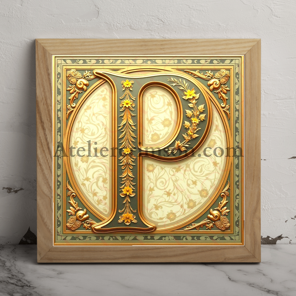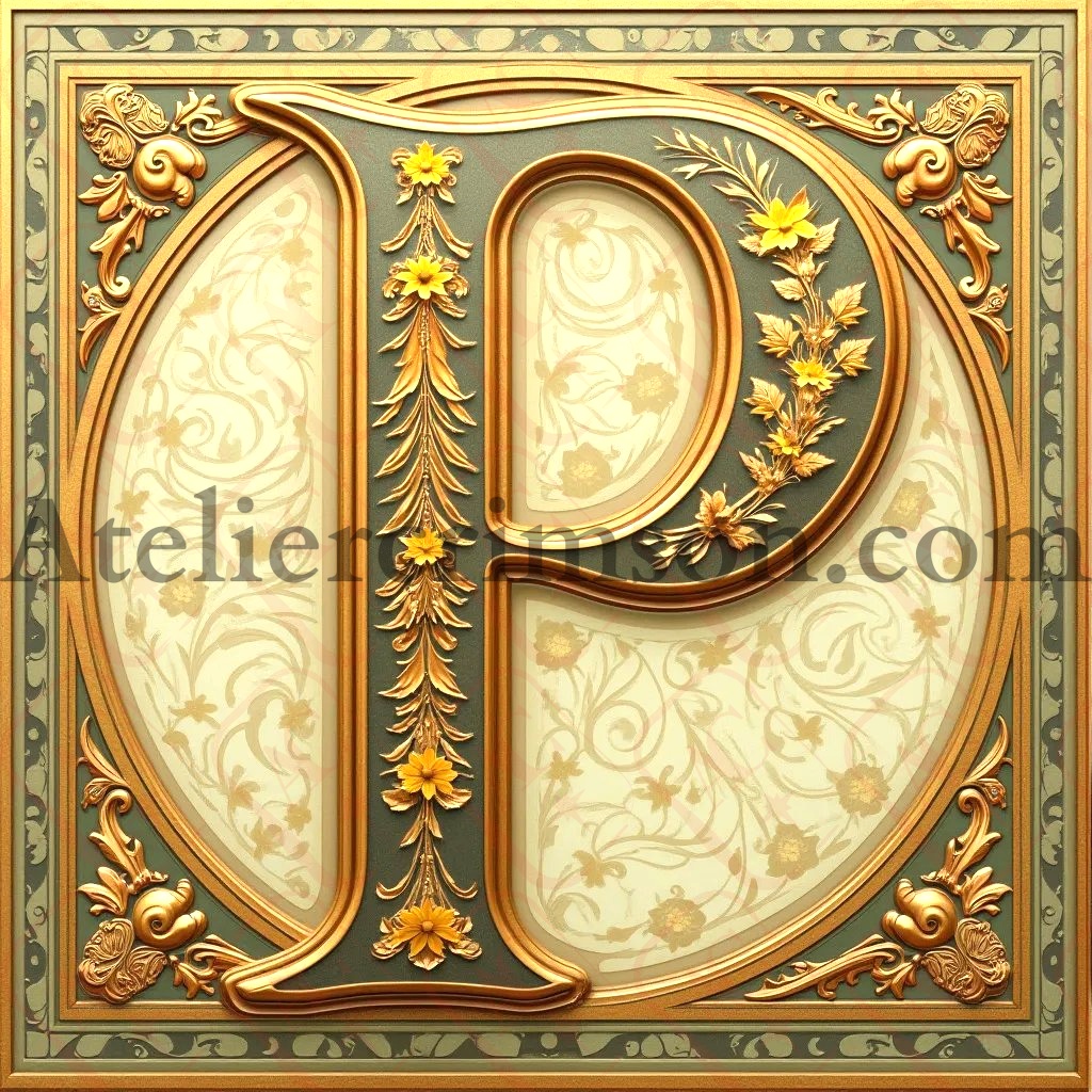 The letter P gold metal art nouveau Download Now this high quality AI-generated image, perfect for adding a touch of tranquility and creativity to any space.