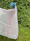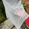 1 repeat of Edging Pattern (Part Four): 11.5cm at widest point x 3.5cm high using 3.75mm needles, after blocking and relaxing to finished measurements.
