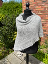 Rhiannon was a great queen from Welsh mythology and this dramatic hap shawl is named in her honour. It uses a traditional hap shawl construction, beginning with the central square, from which stitches are picked up all around to work the two borders. Once these are complete the knitted-on edging is added, complete with tidy short-row corners.