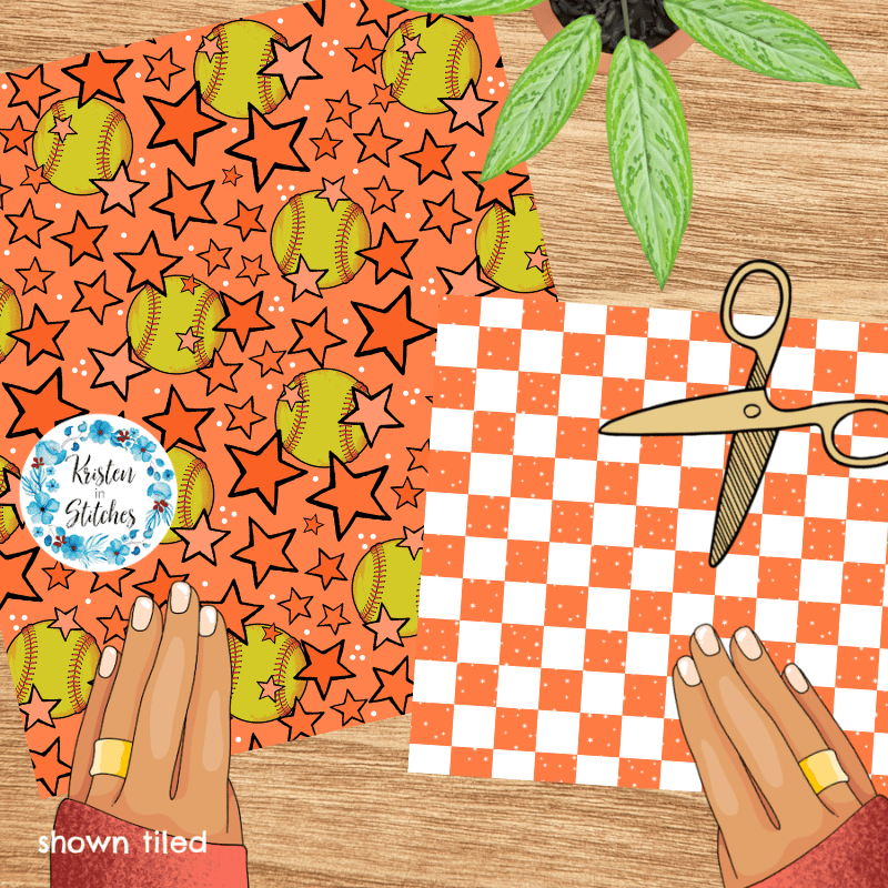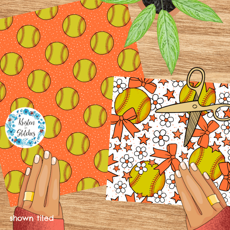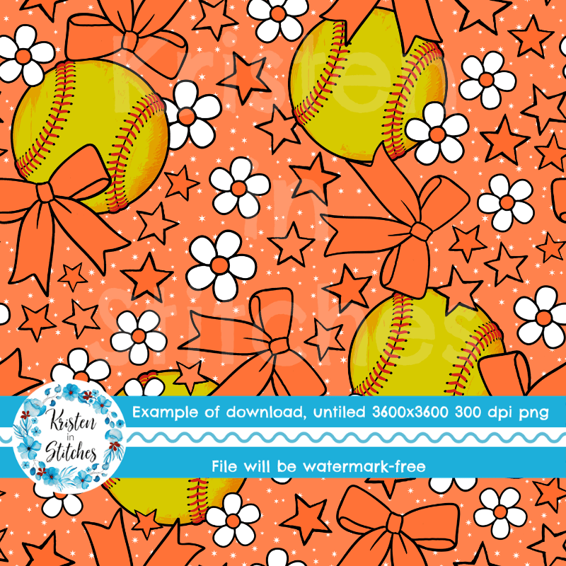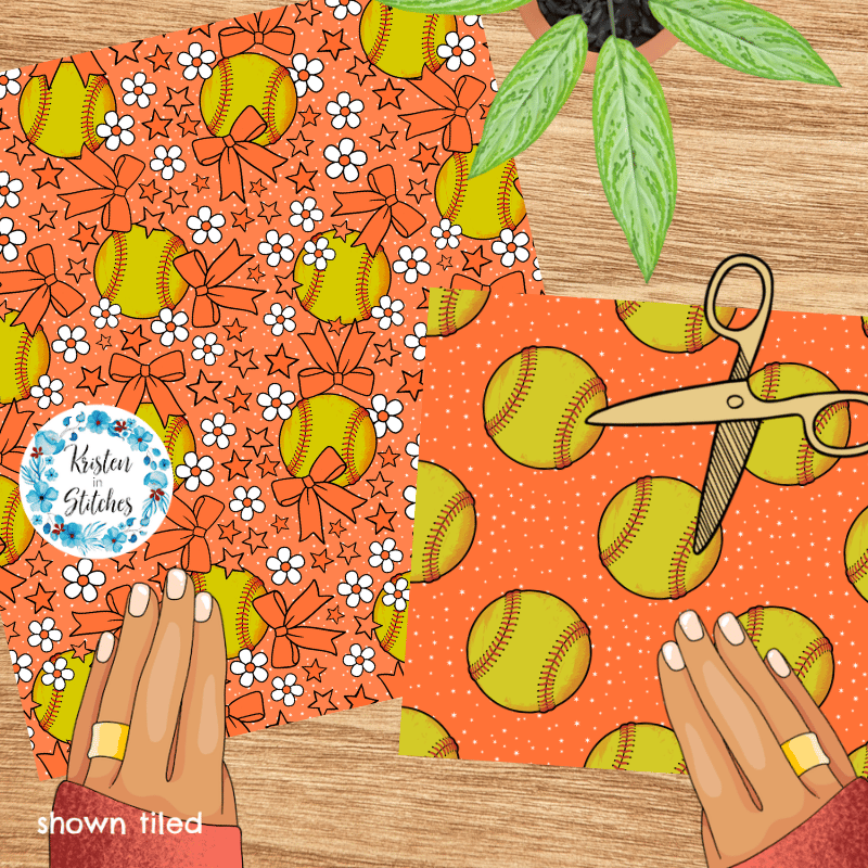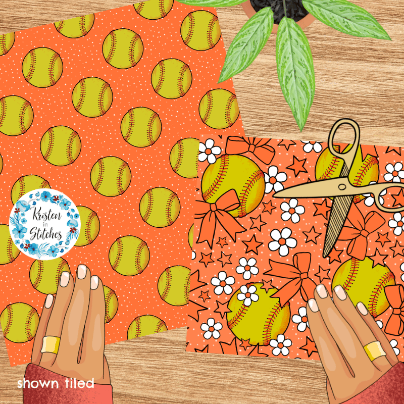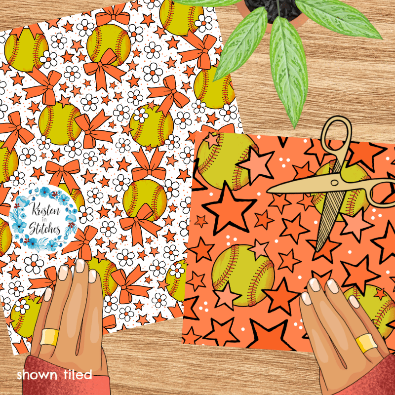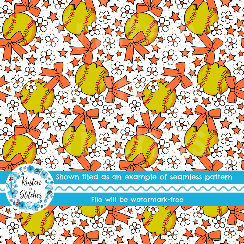 Team Spirit Softball Seamless Pattern Set of 6, Orange