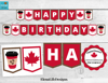 Coffee Birthday Banner - Canadian Coffee Maple Leaf Digital Happy Birthday Instant Download Banner - Printable Tims Coffee Banner - Coffee Happy Birthday Banner - Coffee Sign - Red Brown White