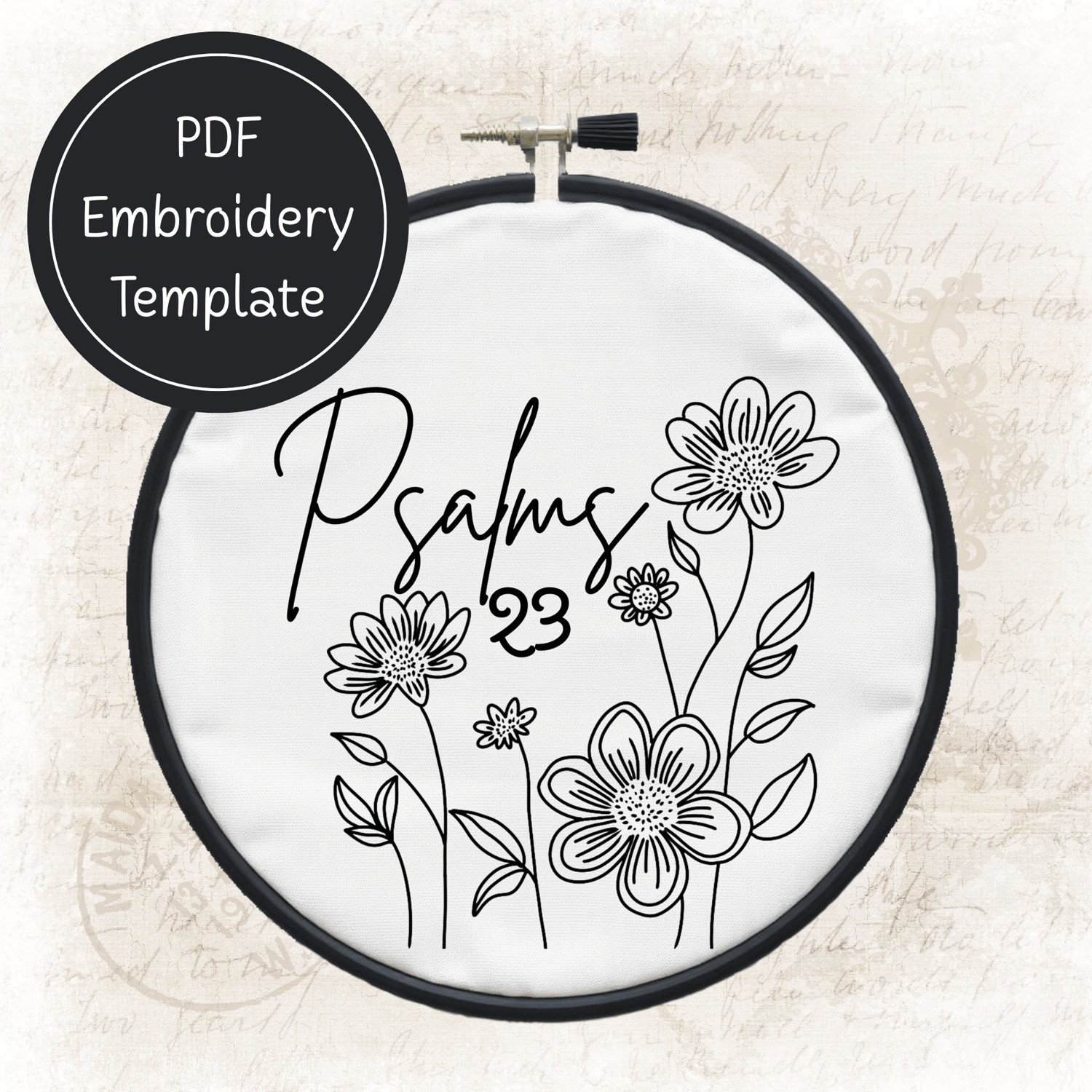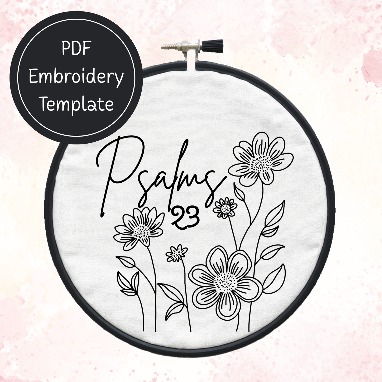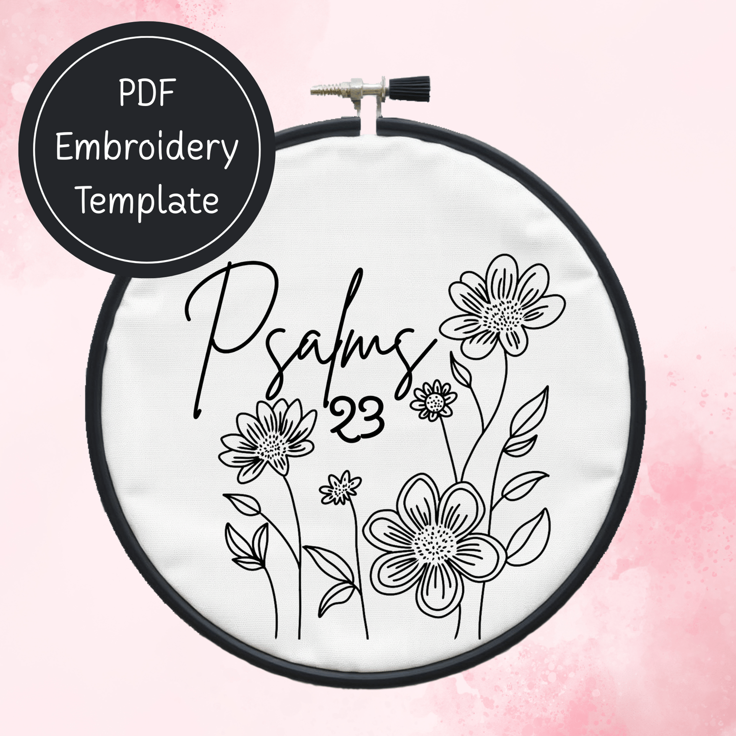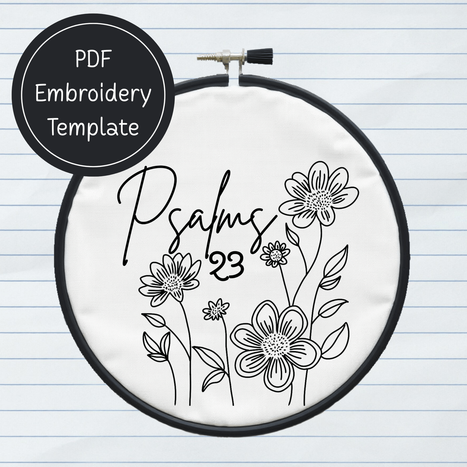 Psalms 23 Christian Embroidery Template PDF - DIY Scripture Design For Hand Stitching - Instant Download
