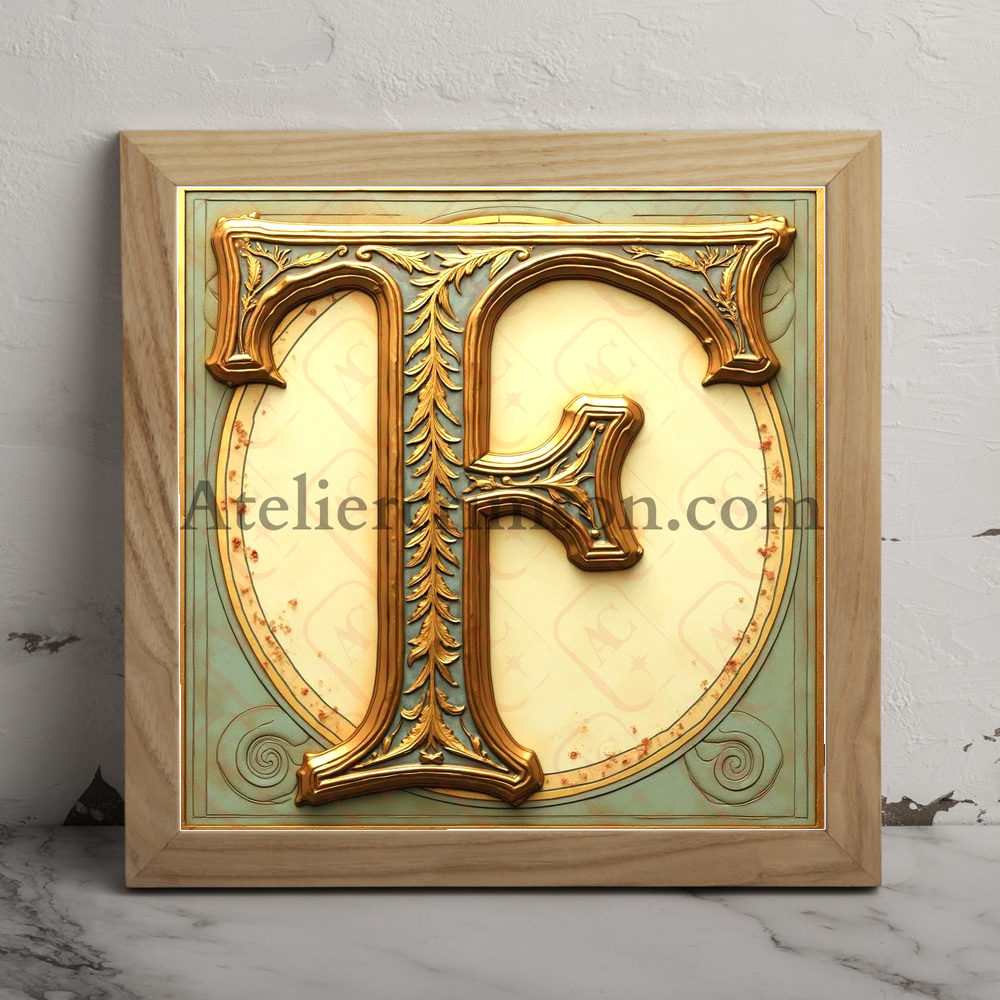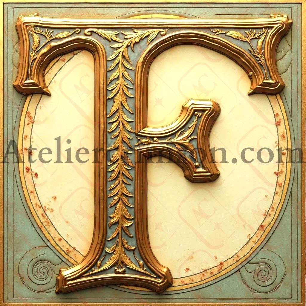 The letter F gold metal art nouveau Download Now this high quality AI-generated image, perfect for adding a touch of tranquility and creativity to any space.