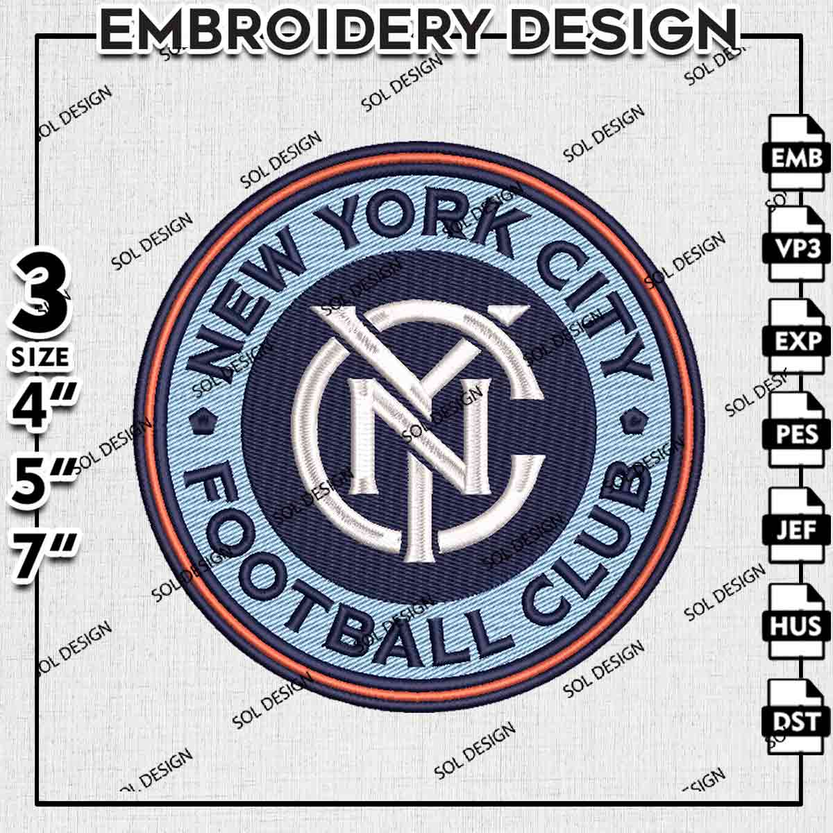 MLS New York City FC Round Logo Embroidery Designs, New York City FC Embroidery Files, MLS New York City FC Logo Embroidery, Major League Soccer Machine Embroidery Design, Digital Download