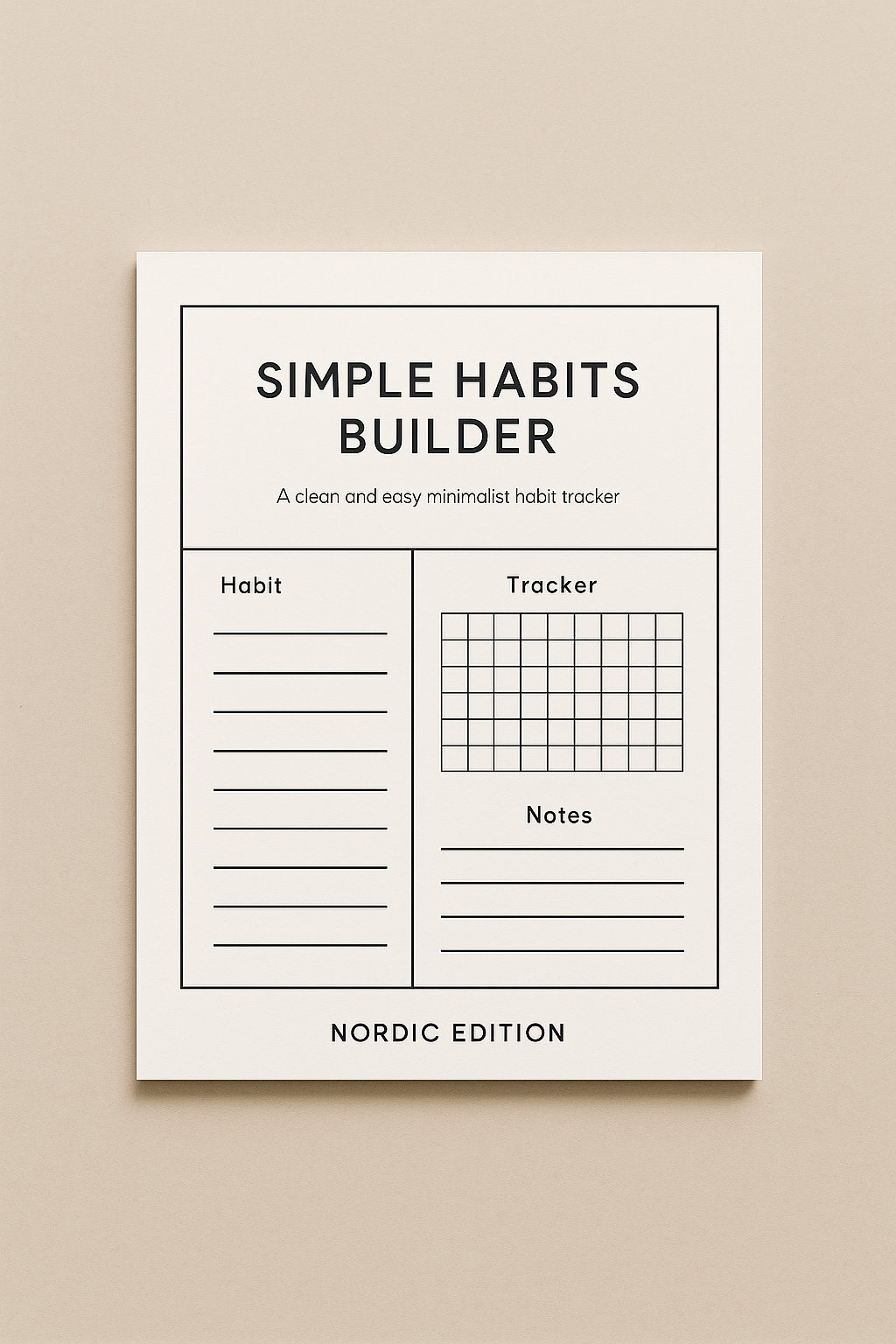 A minimalist habits builder designed to help you create simple, sustainable routines. This clean Nordic template supports habit formation with clarity and consistency, without pressure or complexity.