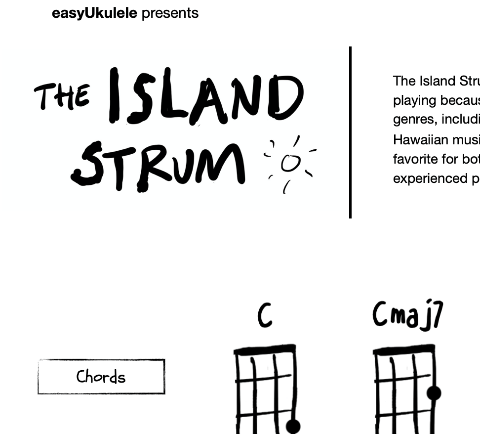 This Pdf contains the chords, strumming and progressions shown on the Island Strum video from the easyUkulele YouTube-channel.