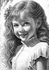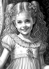 12 Grayscale Beautiful Little Girls Smiling | Laughing Coloring Pages | Printable Adult Coloring Pages | Download Grayscale Illustration