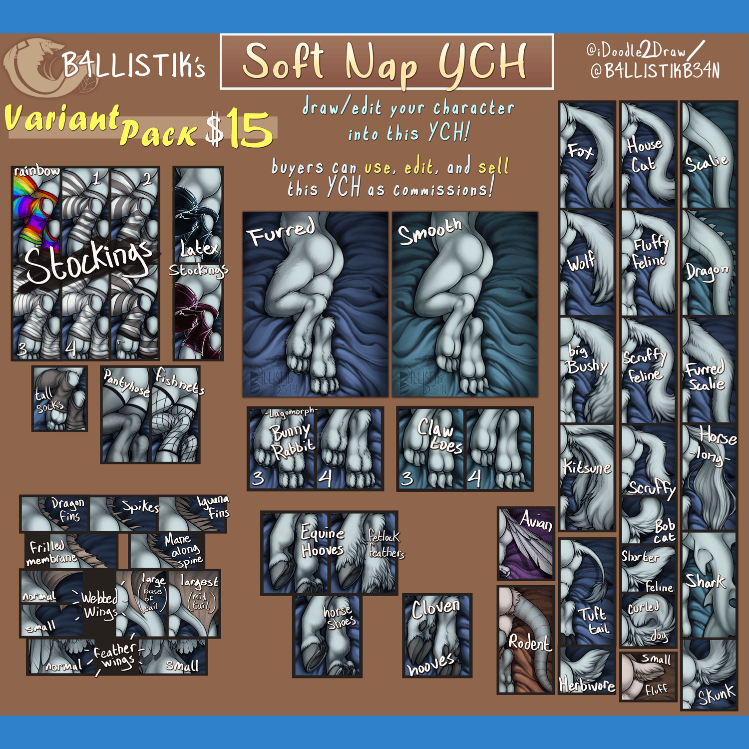 if you would like a bundle of specific YCH templates [ex: Soft Nap Base Pack + Variant Pack], feel free to request one!