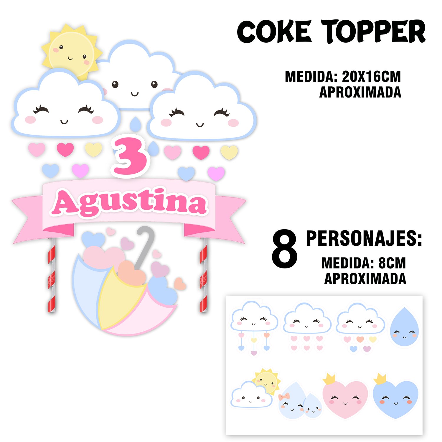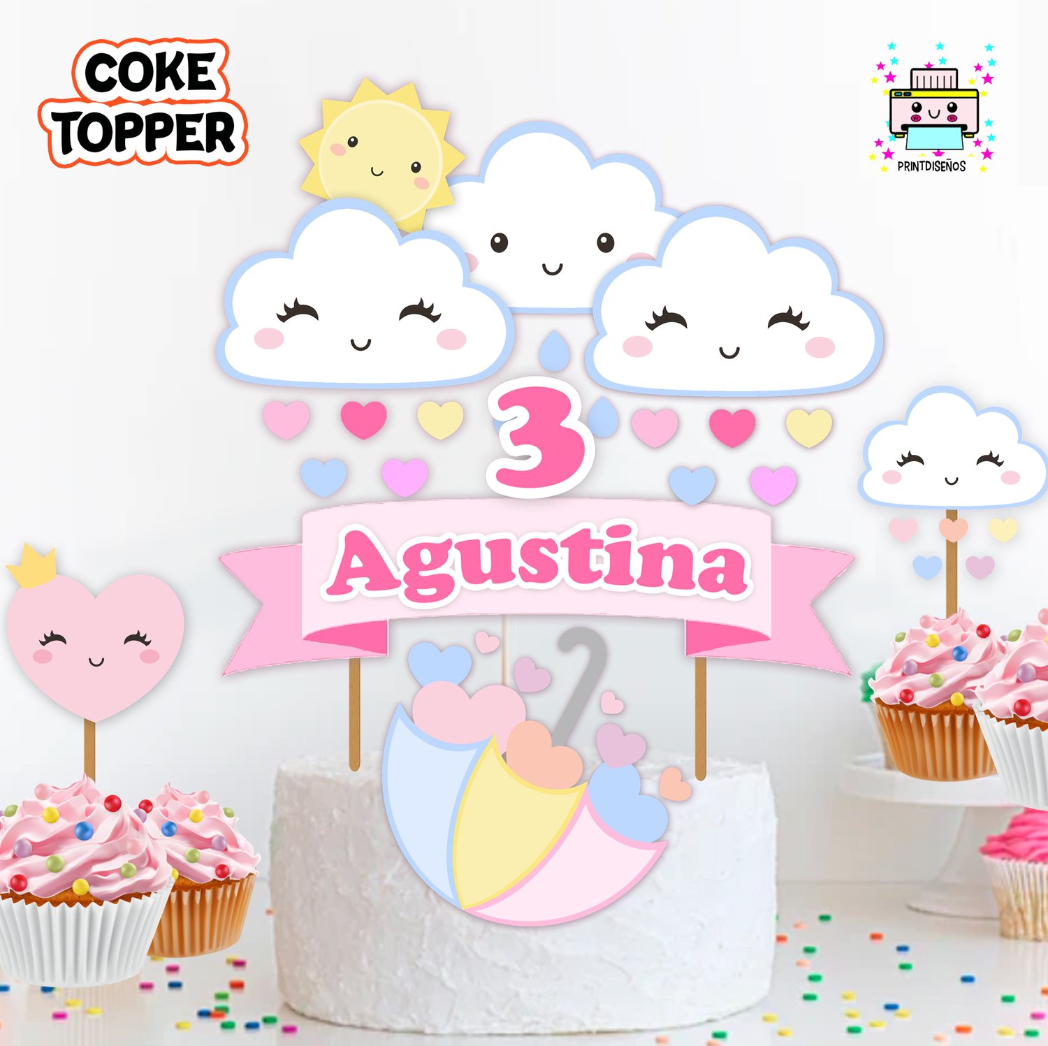 Kit Imprimible Cake Topper Adorno Torta lluvia de amor
