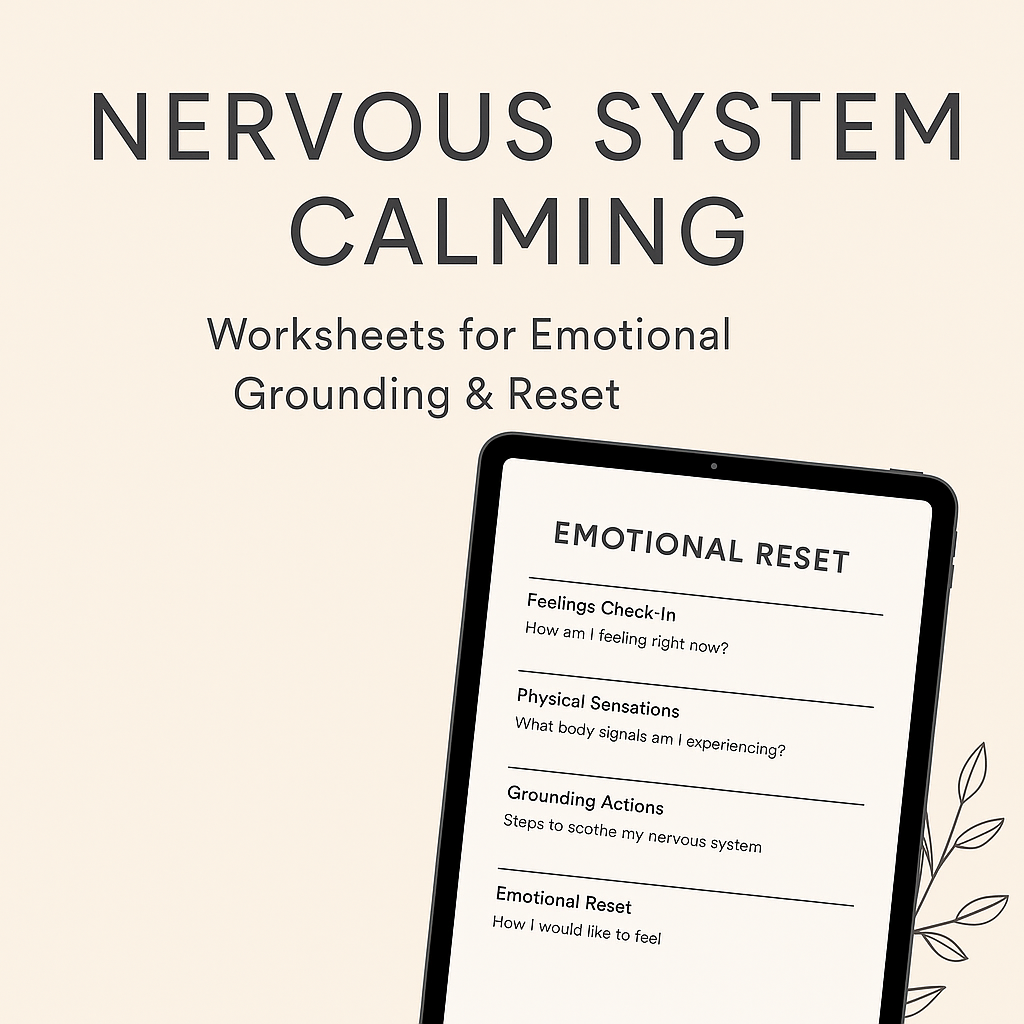 A calming, evidence-based toolkit to help you regulate emotions, reduce overwhelm, soothe your nervous system, and build emotional balance. Includes awareness pages, grounding tools, reset worksheets, and reflection trackers. Printable + digital. Instant download.