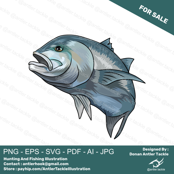 Giant Trevally Fish Illustration Logo Exclusive License Designed By Donan Antler Tackle