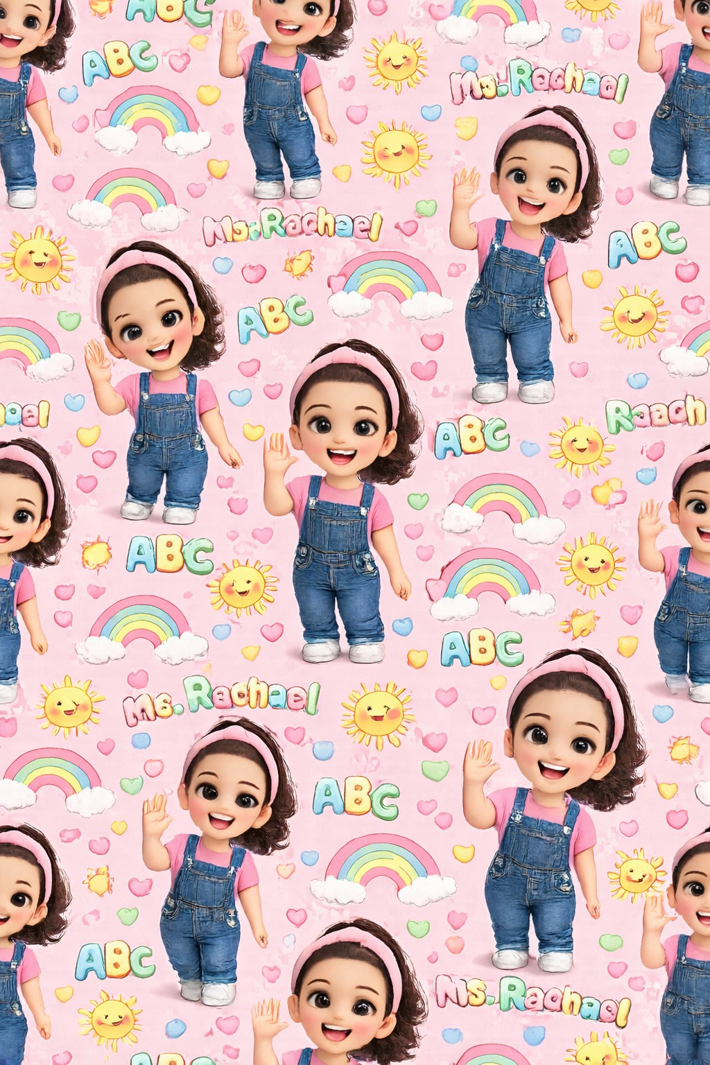Create playful, kid-friendly designs with this adorable Ms. Rachael–inspired seamless background. Designed in a soft pink palette with cheerful ABC letters, rainbows, suns, and hearts, this repeating pattern is perfect for children’s projects, party designs, and creative digital products.