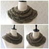 Measurements: The finished blocked item measures 22” (56cm) at the top and 34” (87cm) at the bottom, by 9” (23cm) when laid flat or 5” (13cm) when worn. If you would like to add more cable repeats to make the cowl more slouchy you will require appox 12.5g / 0.4oz, 22yds / 20m of yarn per repeat.