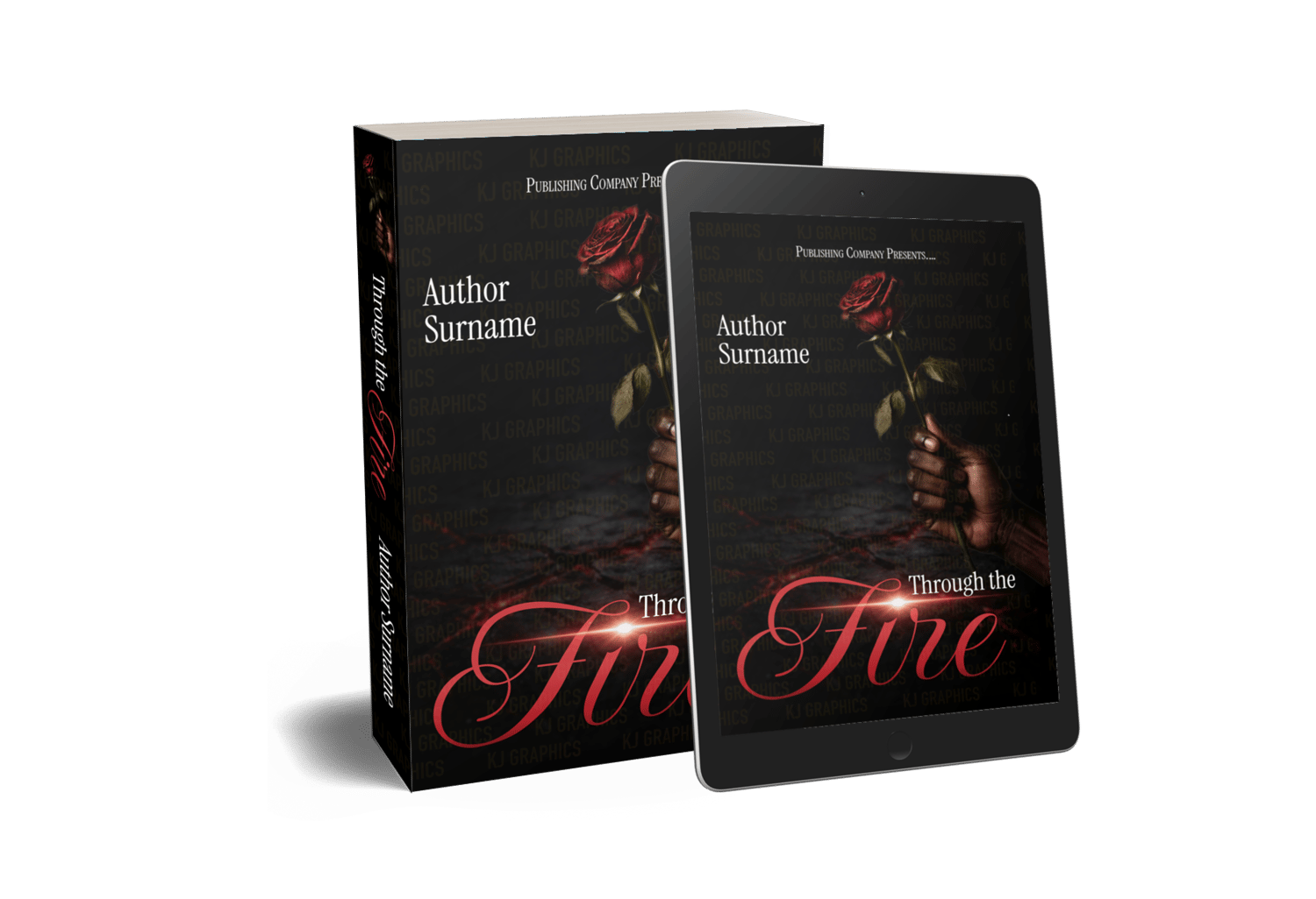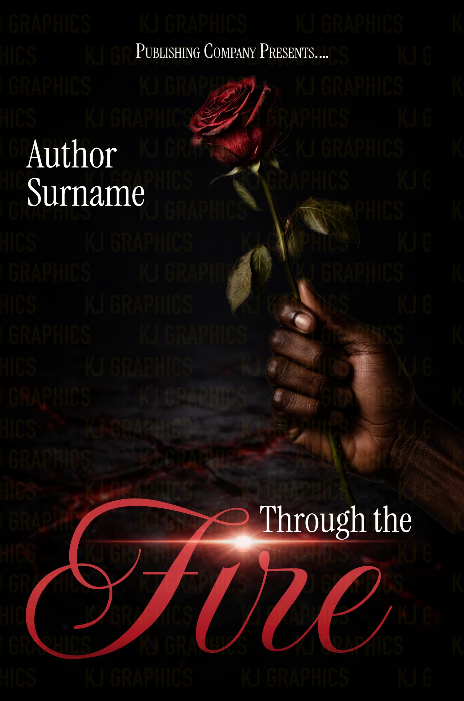 Through the Fire is a bold, emotionally charged premade book cover designed for contemporary romance, romantic suspense, drama, or stories of redemption and resilience. Featuring a single red rose held against a dark, smoldering backdrop, this cover symbolizes passion, sacrifice, heartbreak, and love that refuses to burn out.