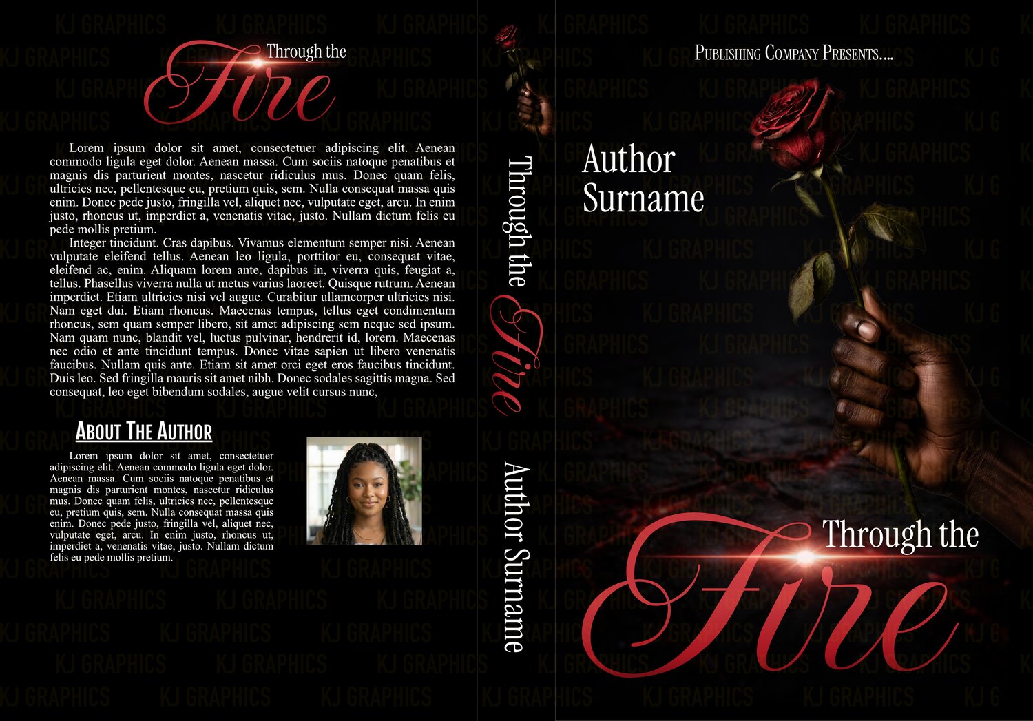 Includes front cover, spine, and back cover layout. Final file will be sized according to your trim size and final page count.