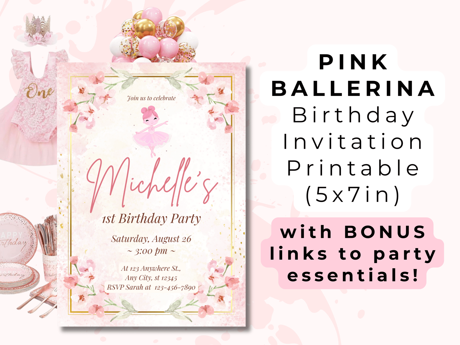 Pink Ballerina Birthday Invitation Printable (With BONUS Links to Party Essentials)