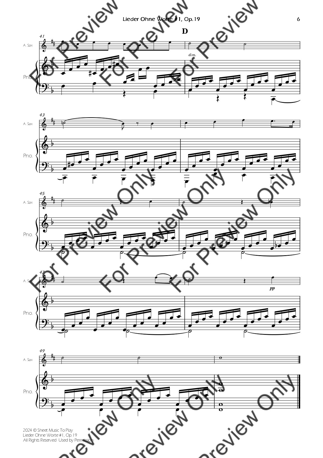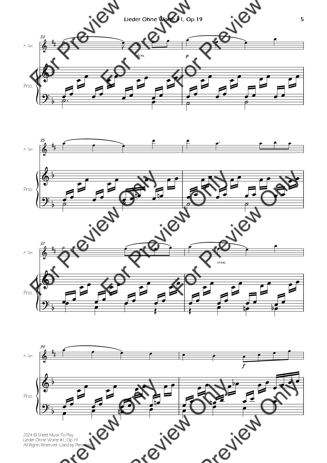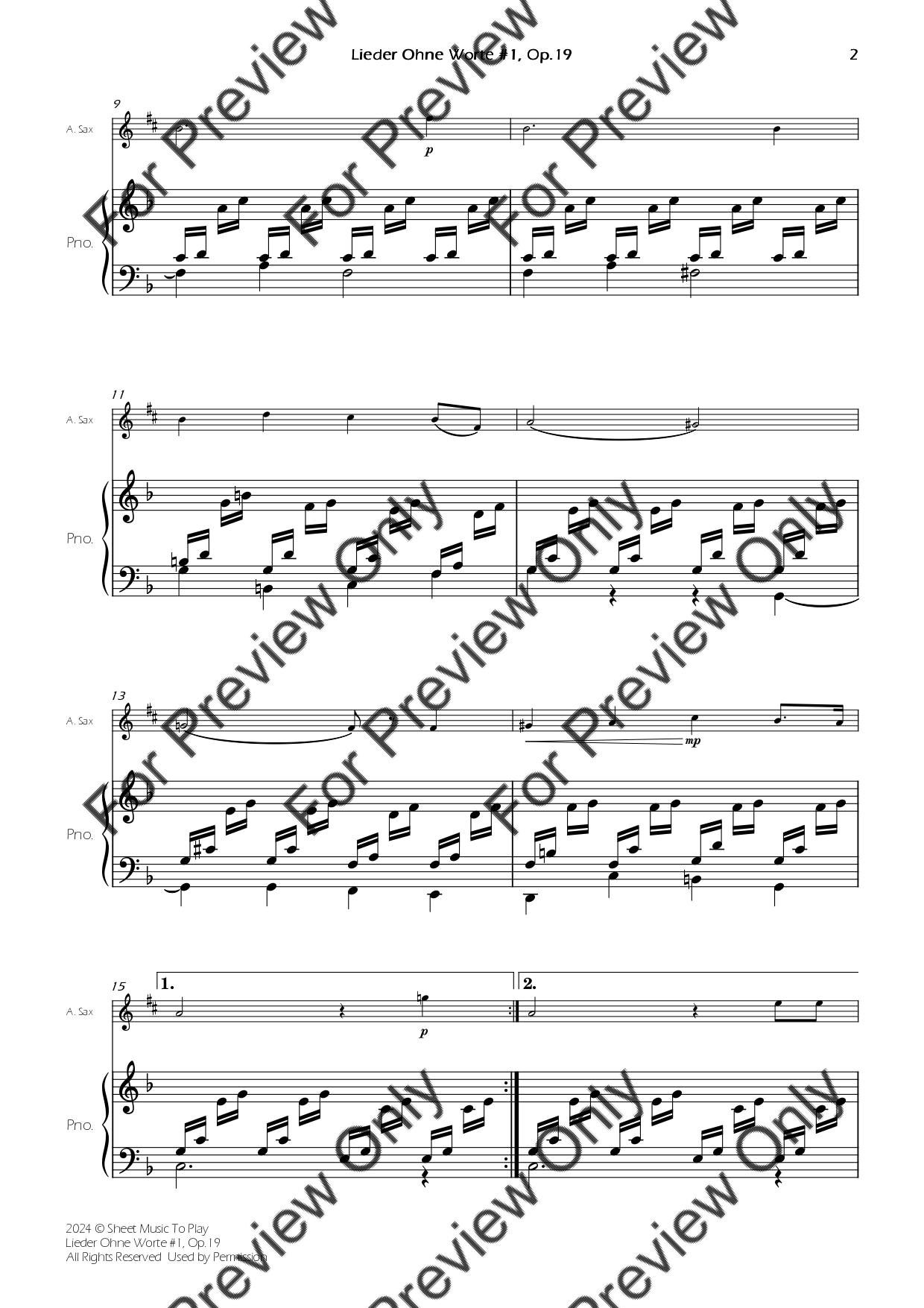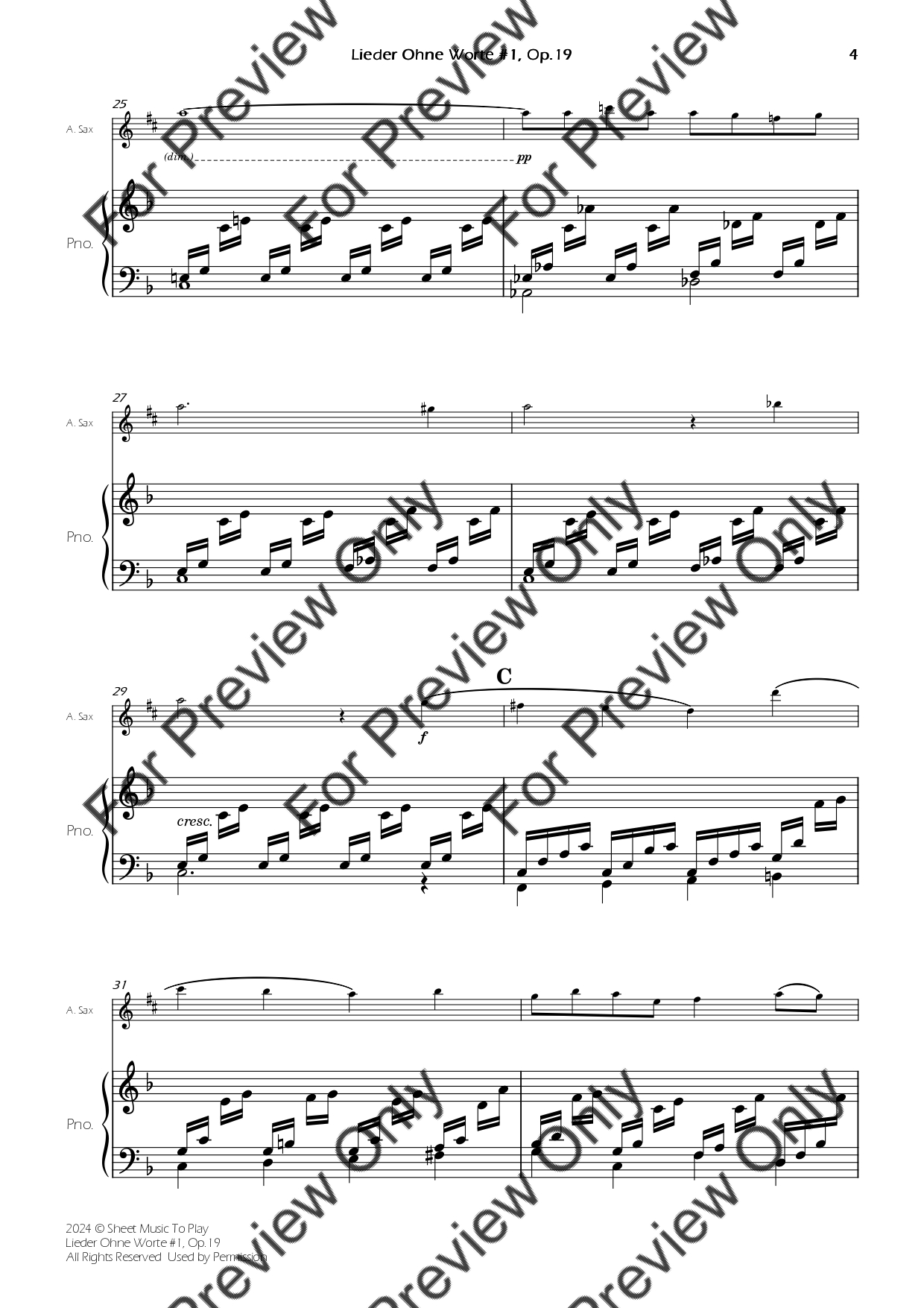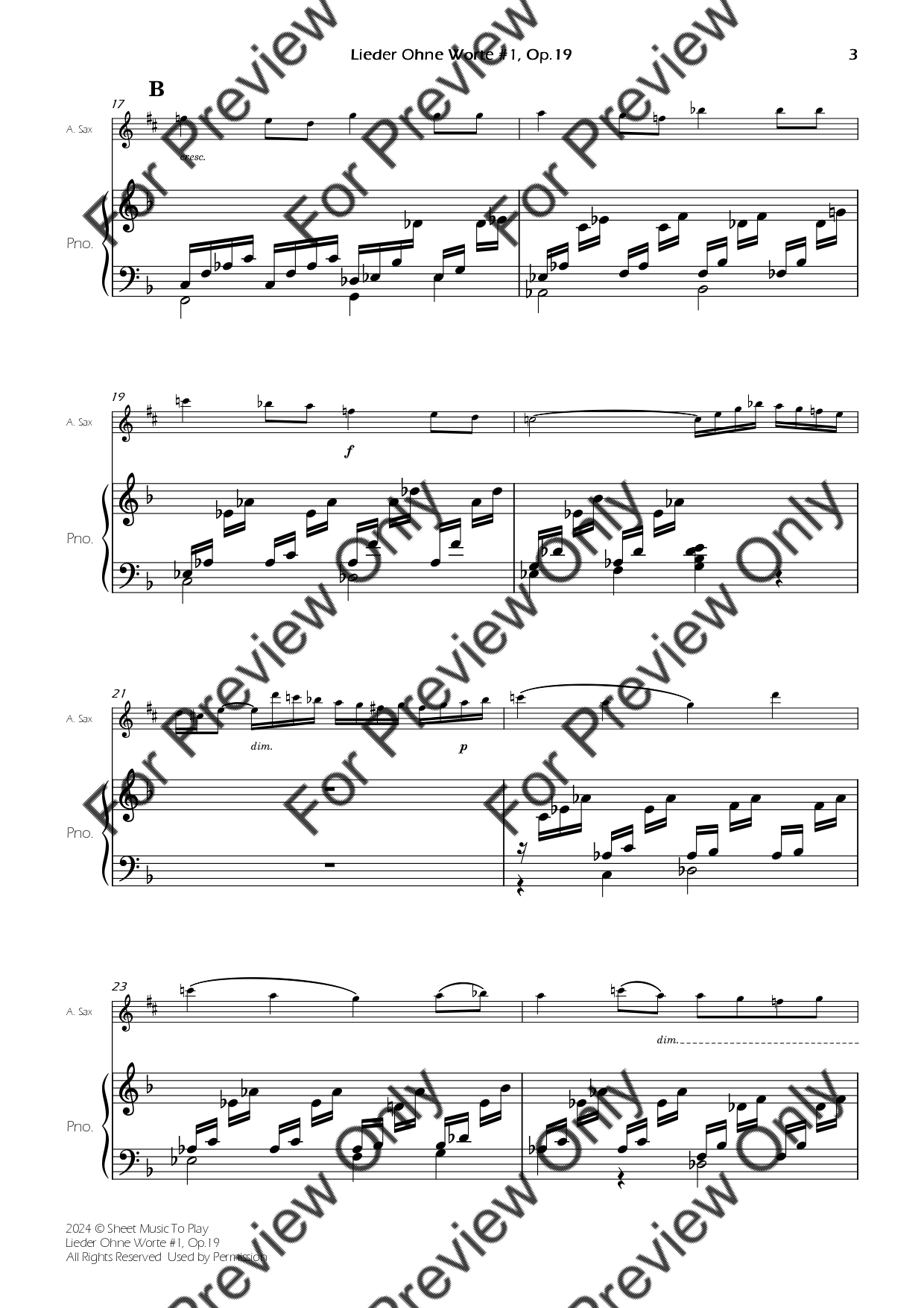 Songs Without Words #1, Op.19 - Alto Sax and Piano