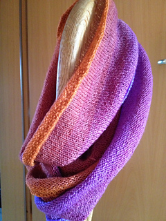 It can be worn doubled or tripled and is reversible. You can see it worn all ways in the photos. You can see me dying of heat in the wool sweater, cowl and raincoat.