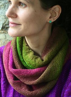 I found Colorshift Yarns on Etsy and have been obsessed with Erica Heftmann’s creations ever since. I knitted the Casapinka Cowl using a Colorbridge which takes you across the color wheel from Botanical Green to Orchid. Each color uses a bit of the previous color to get you there. It’s exciting to see the colors change so beautifully as you knit each row. She has a number of different colorbridges but her gradated sets which have an ombre appearance would look beautiful as well.