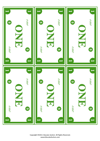 Dollar notes (fake ones) that could be useful for an alternative style token economy. The notes are in values of 1, 5, 10, and 20.