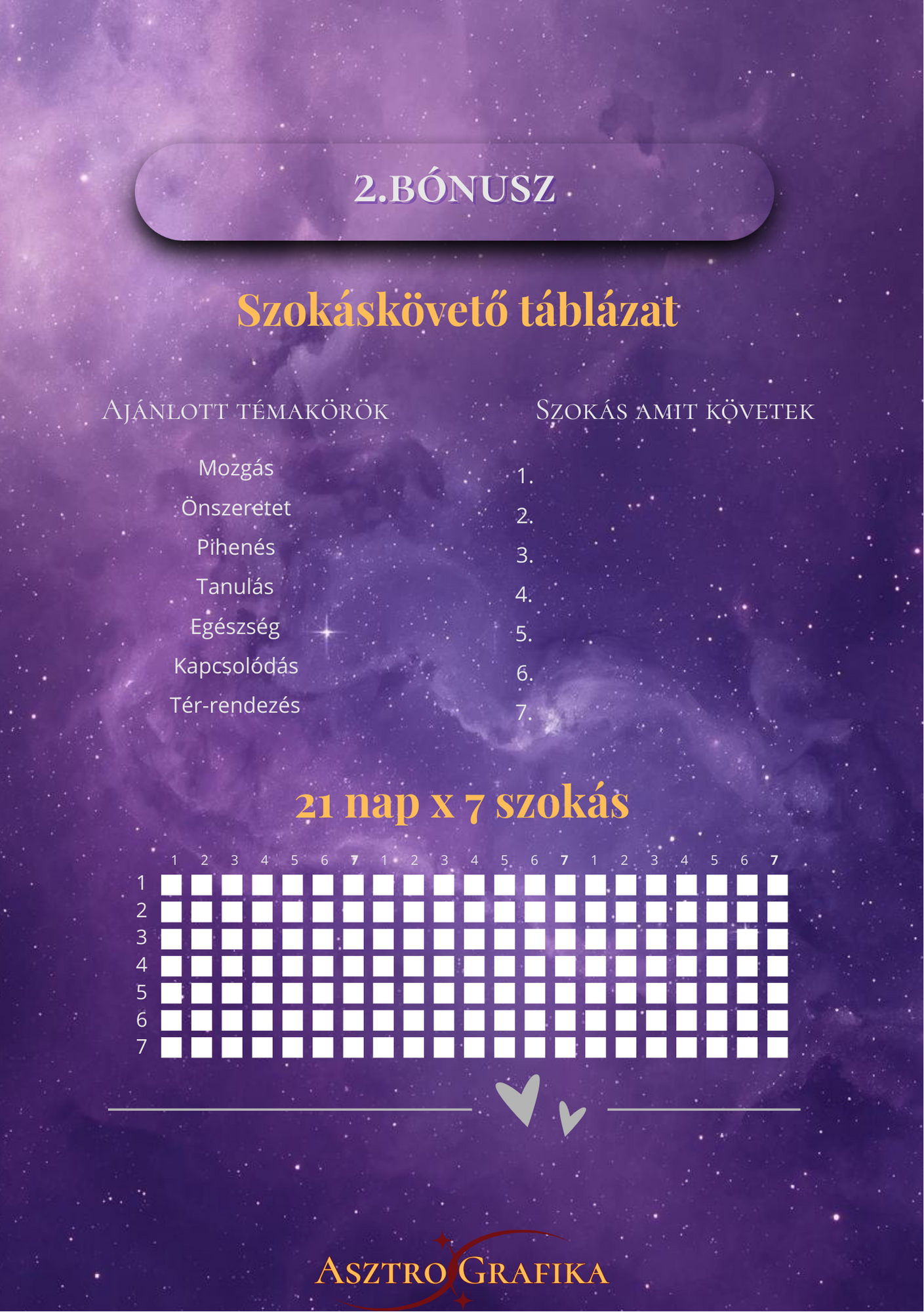 ✨ 21 nap × 7 szokás – szokáskövető táblázat