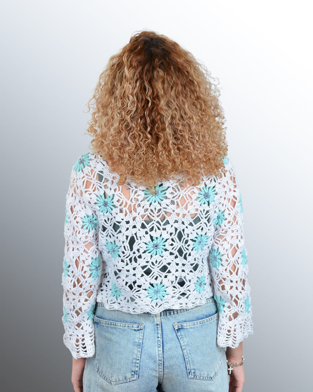 This top embodies elegance with a touch of vintage charm, celebrating the bond between generations and the beauty of handmade tradition. Wearing it feels like carrying a story of affection and strength, woven into each detail.