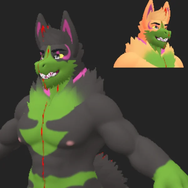 Okidogi, one of the Loyal Three, is quite a muscular fella! I really like his design and wanted to implement that into a fun texture.