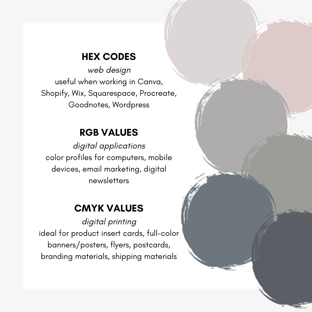 + Detailed Hex Codes, RGB, and CMYK values for each color