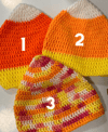 Three color options: traditional candy corn (white, orange, yellow), pastel (white, orange, yellow), and an autumn variation (cream, rust, maize).