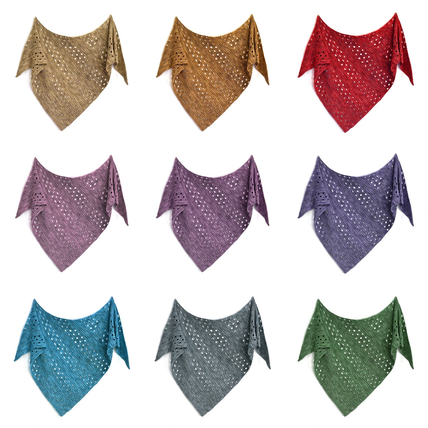 The measurements listed above are only guidelines and you can make this shawl smaller or larger by working fewer or more row-PRs of the stitch pattern. Bear in mind that in this case, your yardage requirements and finished dimensions will change.