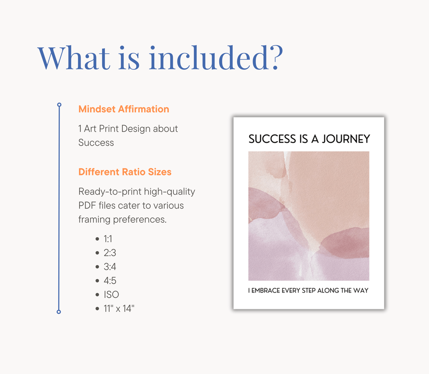 1 Positive Affirmation Wall Art Design Print in 6 different ratio sizes in High Quality PDF Files for Printing and a Thank You Card.