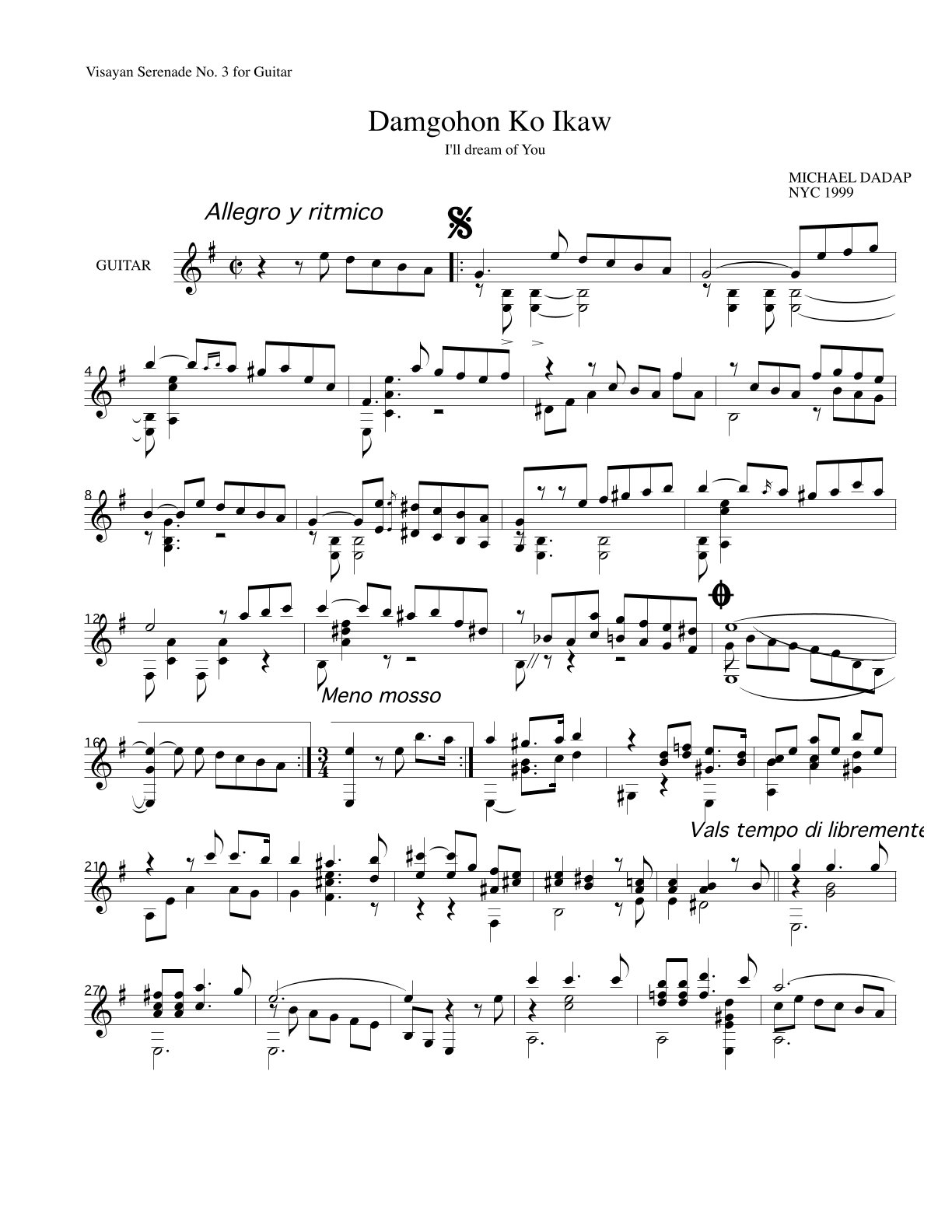 Original composition for classical guitar by Michael Dadap. Damgohon ko or "I dream of you" in English.
