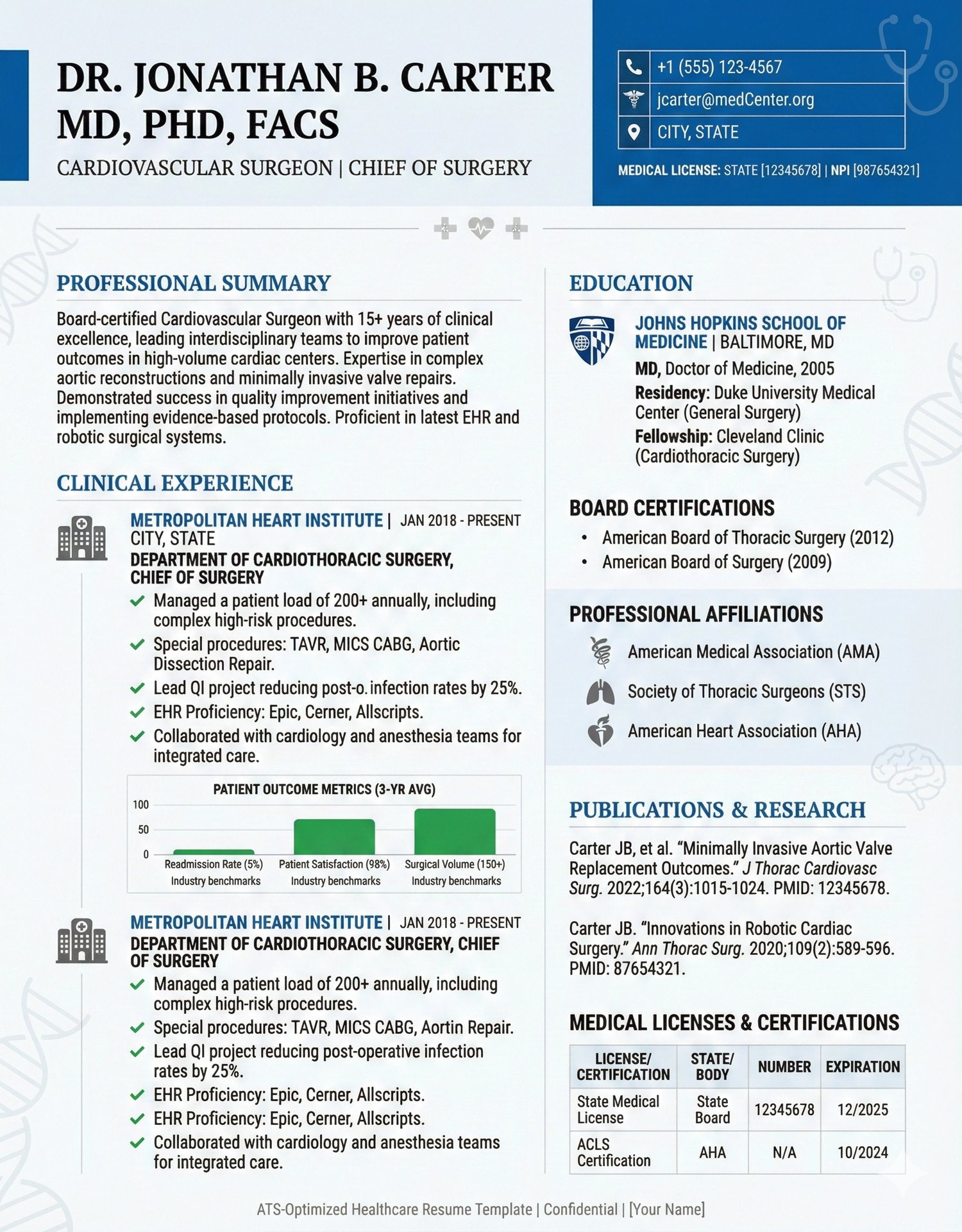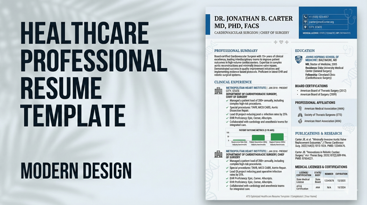 - Compliance-First Layout: The layout is engineered to reduce cognitive load for Hospital HR, ensuring your License Numbers, State Certifications, and Education are visible at a glance.