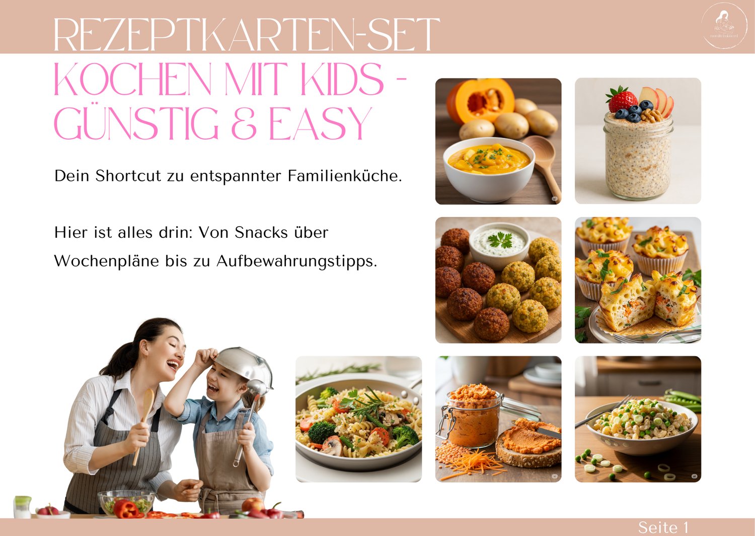 Rezeptkarten-Set „Kochen mit Kids – günstig & easy“