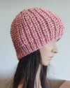This chunky, family Beanie has a 1x1 rib brim then is worked in fisherman’s rib.
