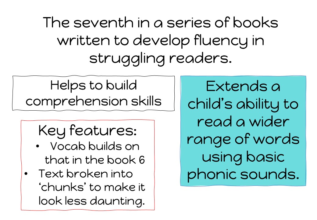This is the sixth book in the series, designed to help children with phonic knowledge who may never have been given a book they can read.