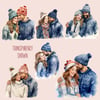 Watercolor Romantic Christmas Winter Love Couple PNG Clipart Bundle - Christmas Romance Digital Image Files, perfect for digital card making, paper crafting, scrapbooking or decorating junk journal, create social media posts, small POD products and much more. If printed on a paper sheet and cut out, they can be used for handmade Xmas projects too.
