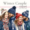 Watercolor Romantic Christmas Winter Love Couple PNG Clipart Bundle