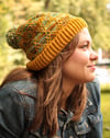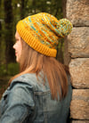 A slightly slouchy beanie that knits up stunningly fast, Witchcraft starts with an extra squishy Fisherman’s Rib brim, then transitions to a playful slipped stitch pattern created with 2 coordinating skeins of The Fiber Seed Sprout DK. Decorative decreases finish off the crown, and it’s topped off with an optional pom (but if you skip the pom, you can get 2 hats out of the 2 skeins of yarn!).