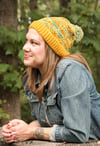 Yarn: The Fiber Seed Sprout DK, 90% superwash Merino, 10% nylon, 250 yd/1.5 g (229 m/3.7 oz): 1 skein each in Mustard (MC) and Grandpa’s Sink (CC)