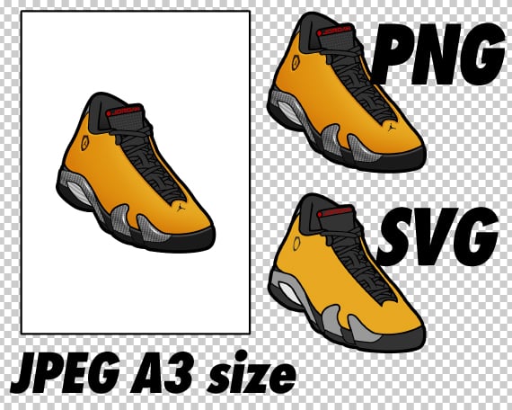 Air Jordan 14 Yellow Ferrari JPEG PNG SVG digital sneaker art