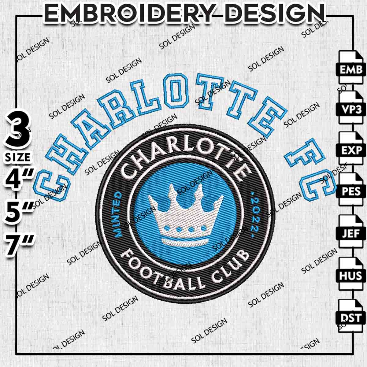 Charlotte FC MLS Logo Embroidery Designs, Charlotte FC Embroidery Files, MLS Charlotte FC Soccer Team Logo Embroidery, Major League Soccer Machine Embroidery Design, Digital Download