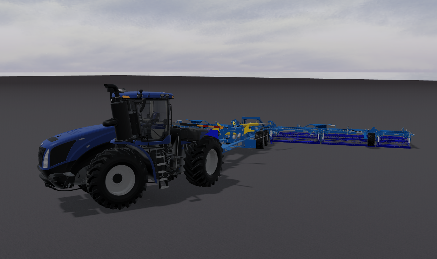 When you get in the drive seat, there's a button you can press to start seeding. The farming attachment is detachable and attachable from the hitch point. Tractor is also articulating.