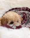 A: Garthenor Preseli (75 % Polwarth, 25 % Hebridean, 219 yds / 200 m / skein) in colorway Tuscany (deep red).