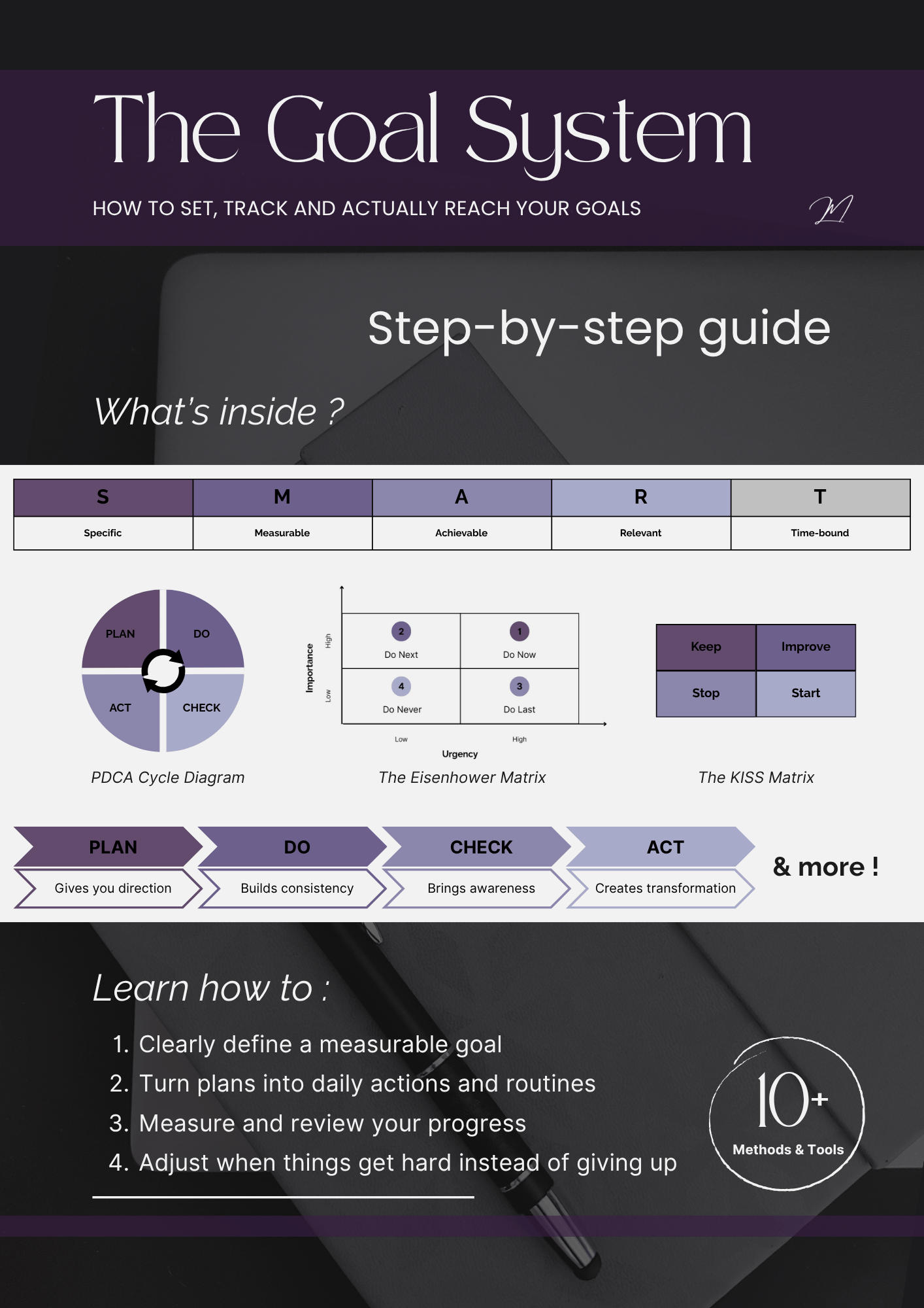 The Goal System is a complete digital guide that helps you set clear goals, build habits, and stay on track using a proven continuous improvement framework.