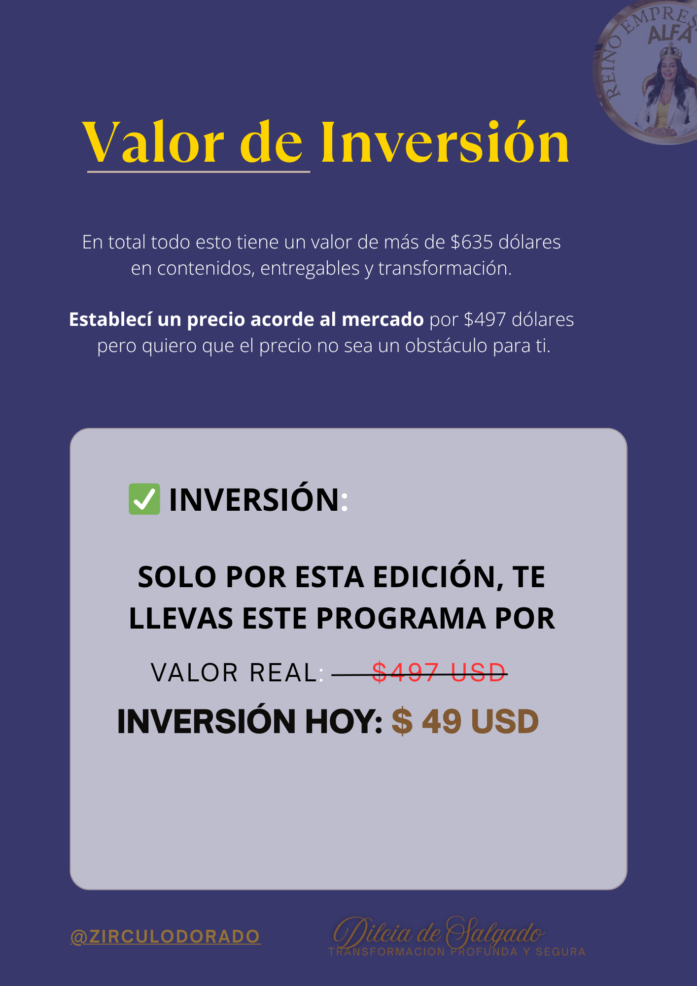 Este programa tiene un valor espiritual muy alto. Y en este lanzamiento, te ofrezco un precio único que no volverá a repetirse. Porque vas a recibir muchísimo más de lo que inviertes. Y porque sé que tu sanación es urgente, profunda y real.