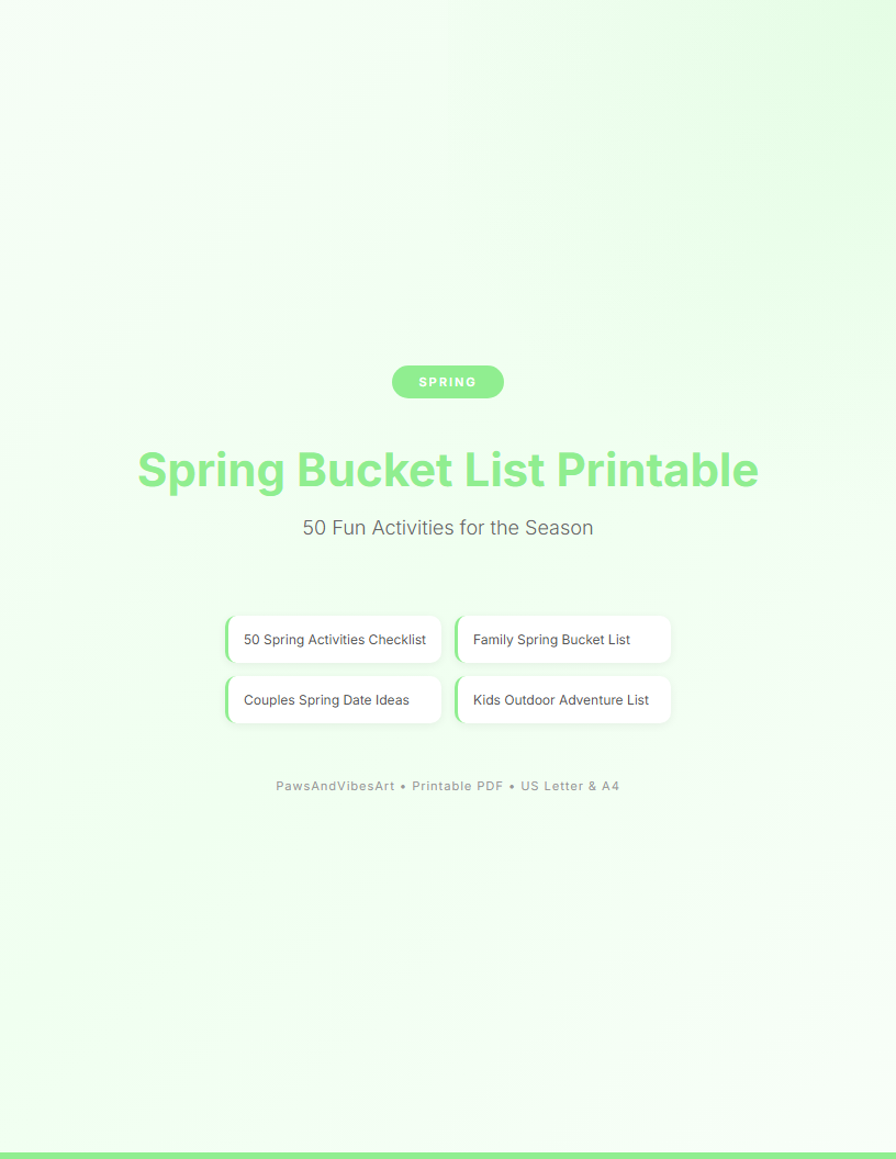 Spring Bucket List Printable | 50 Fun Activities for the Season | Digital Download | Printable PDF