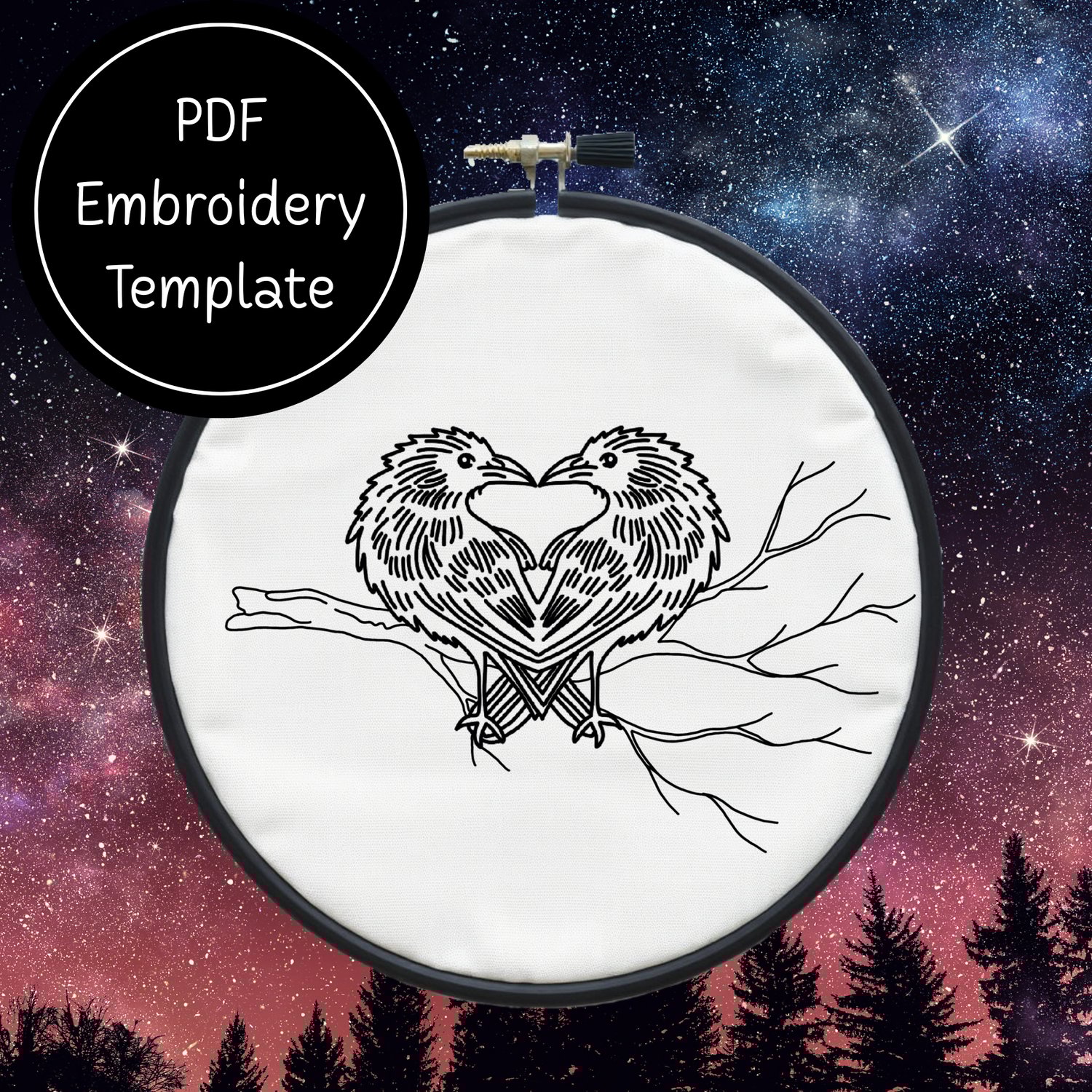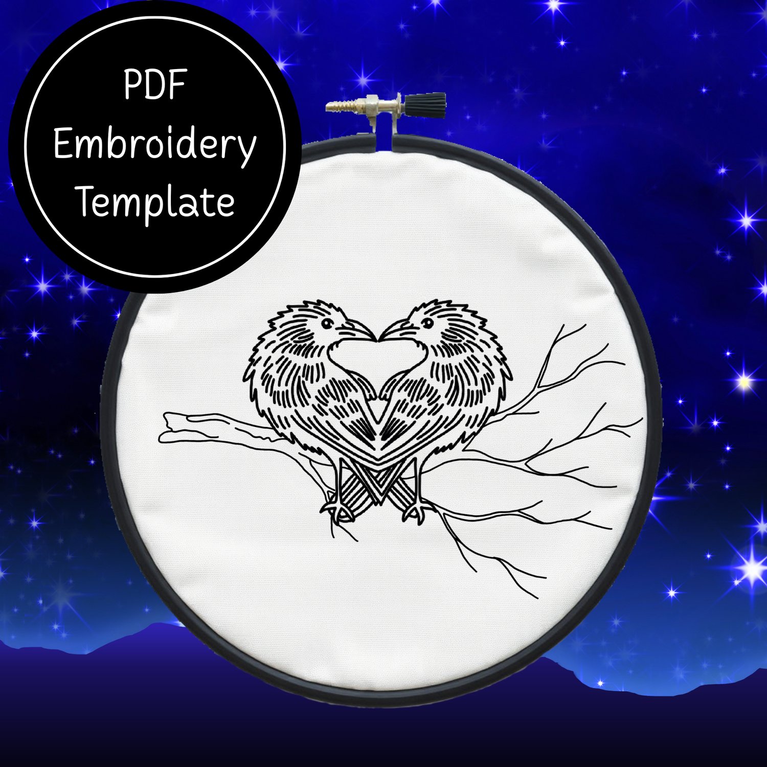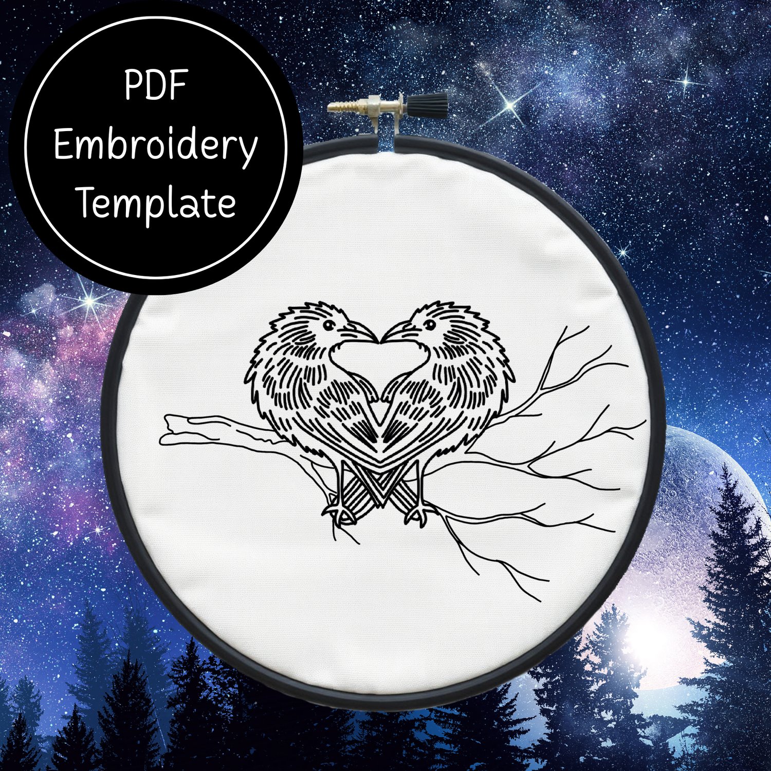 Double Ravens Hand Embroidery Template PDF - DIY Bird Design For Hand Stitching - Instant Download