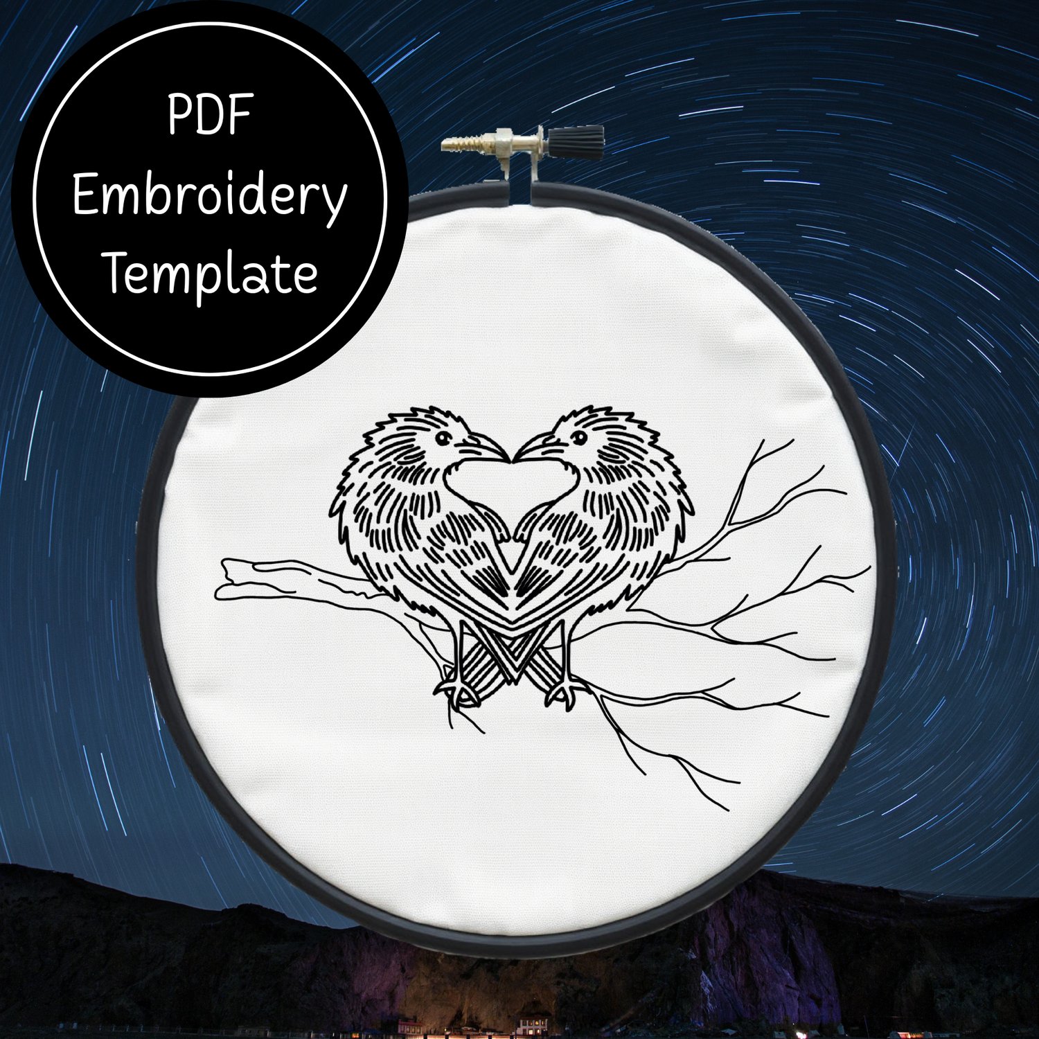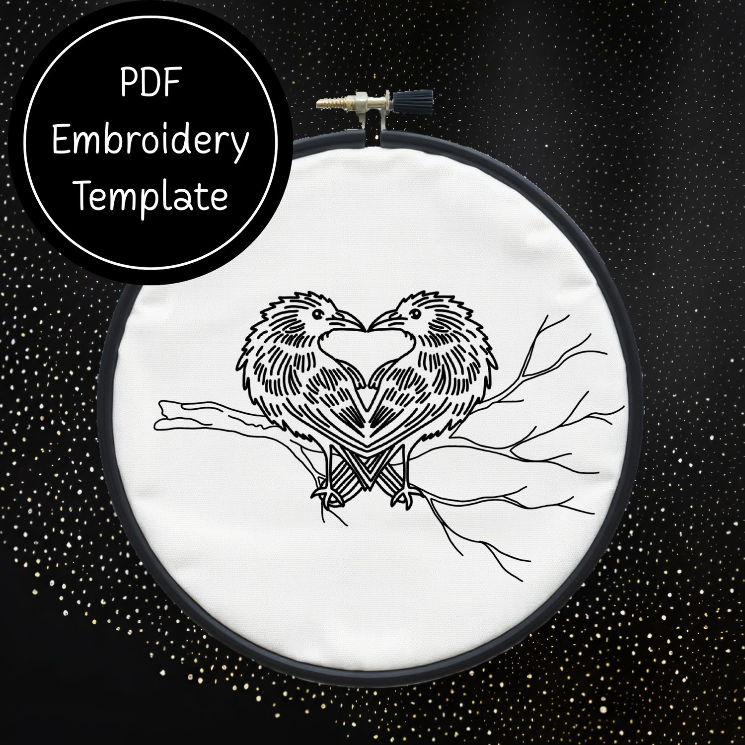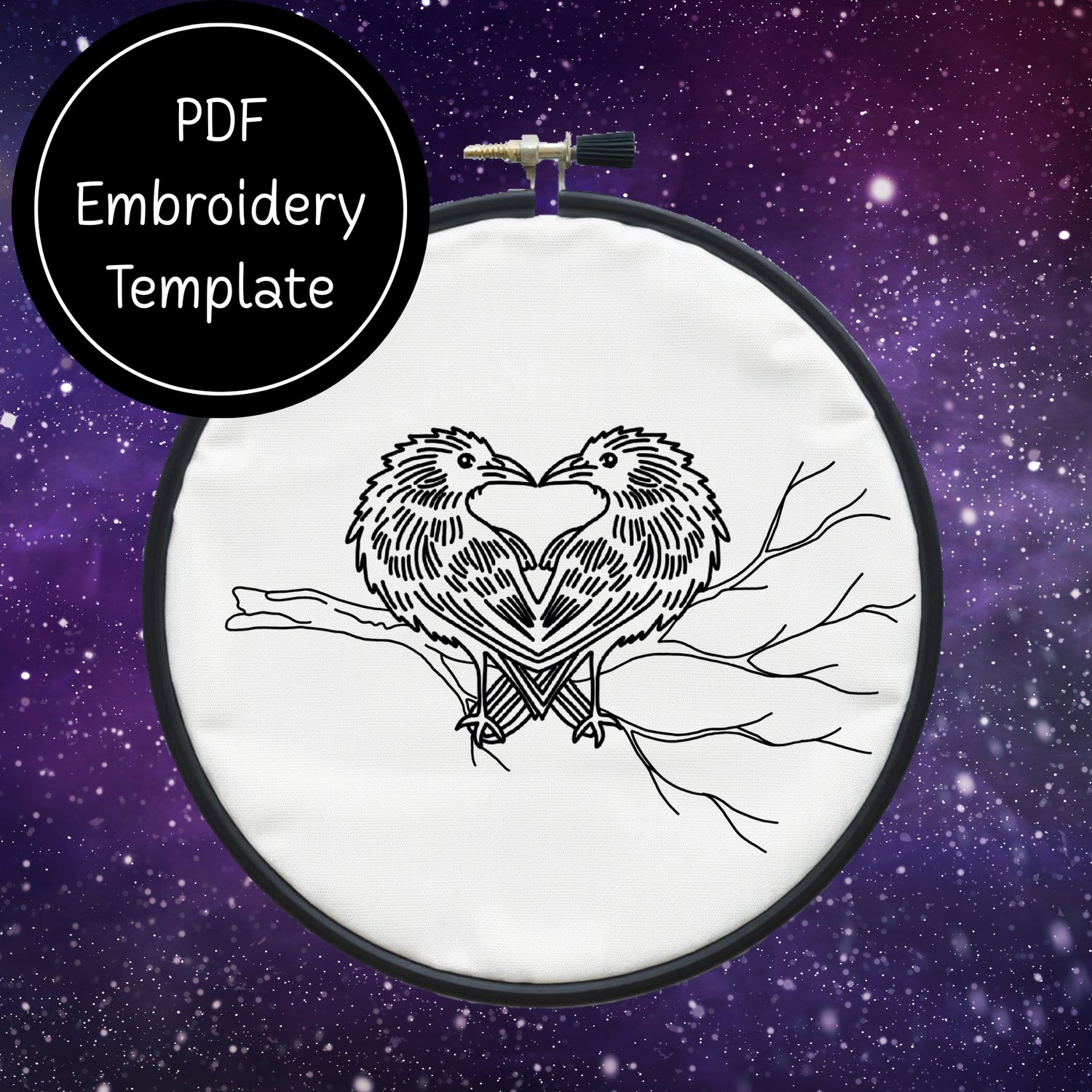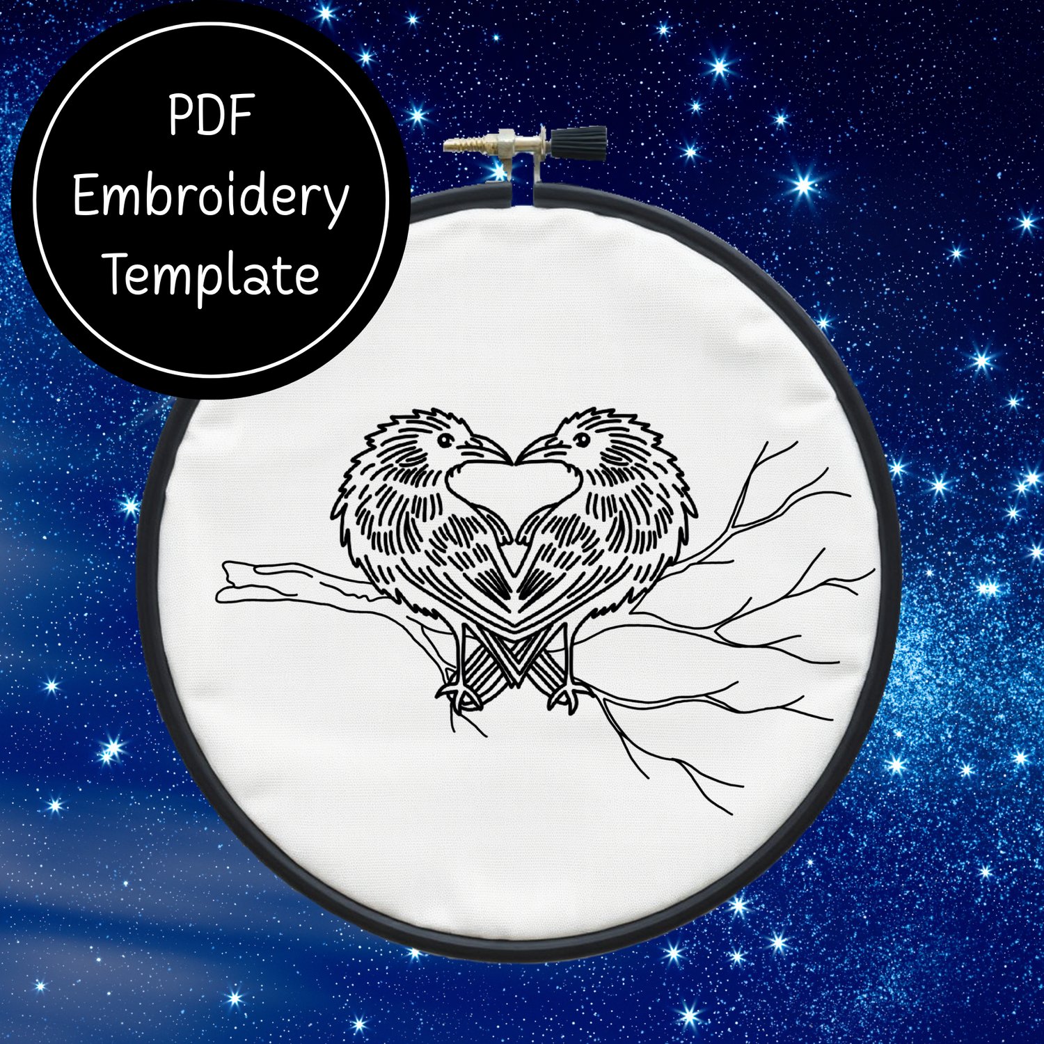 Double Ravens Hand Embroidery Template PDF - DIY Bird Design For Hand Stitching - Instant Download