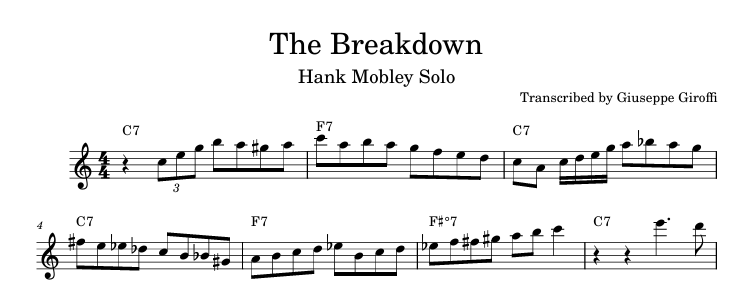 Hank Mobley - The Breakdown - Tenor Saxophone Transcription
